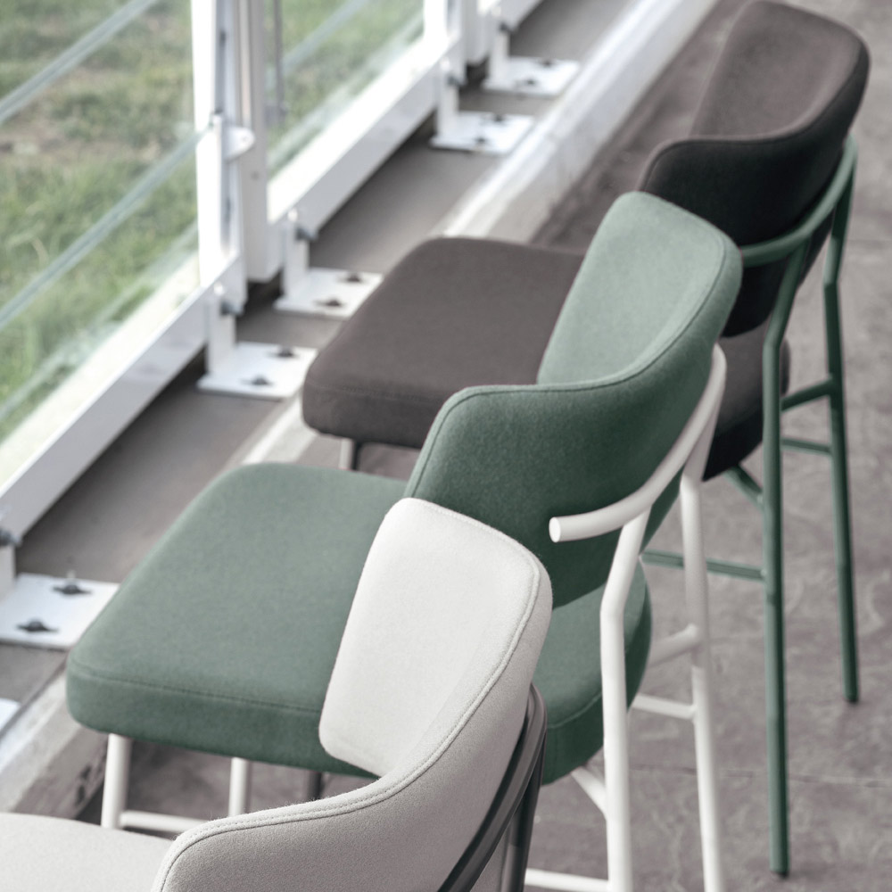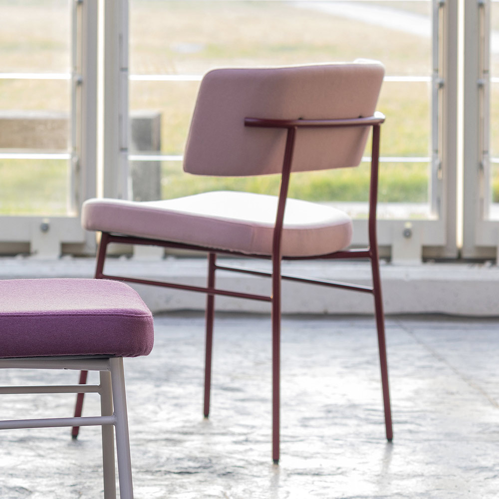 Modern chair for dining room or kitchen with painted metal structure and seat covered in fabric . Its design is characterized by a conformation studied to ensure a comfortable and welcoming solution that can at the same time enrich the aesthetics of the room in an innovative and extremely modern way. The use of high quality raw materials also ensures a solid and sturdy chair and therefore particularly functional . Moreover, thanks to the possibility to choose between different color combinations, it will be able to adapt to every need, responding in the best way to those who require a more sober and discreet solution but also to those who want a colorful and lively look to enrich and make their own unique. furniture.