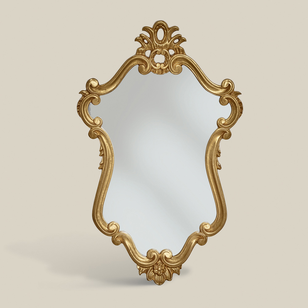 Elegant mirror with a classic and baroque style characterized by a shaped frame finished with refined gold leaf , ideal for decorating any environment with personality and originality. A unique and refined complement, completely made in Italy by skilled master craftsmen , masters of art who finish each complement with wisdom and taste for elegance. The production is carried out using fine materials , and performing the work by hand with the utmost care and professionalism that distinguishes Made in Italy products.