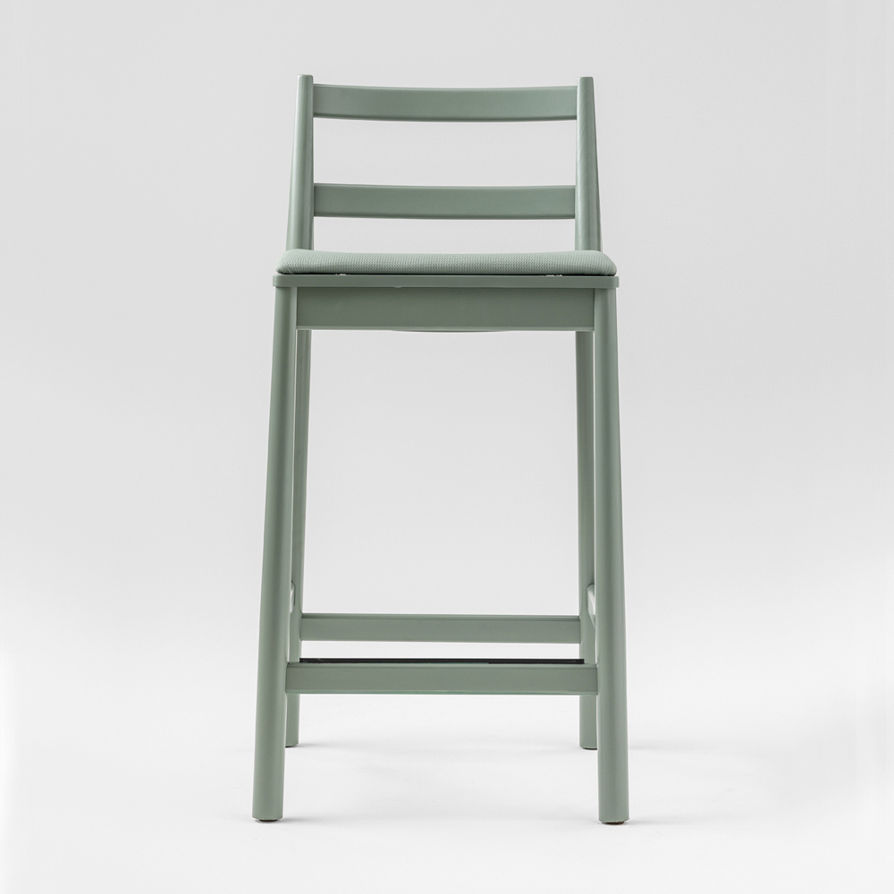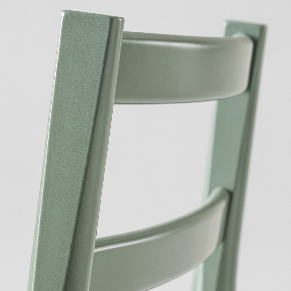 Modern stool ideal for kitchen counters or high tables made in Italy in green lacquered beech wood. Extreme simplicity becomes the strong point of this discreet furnishing accessory that manages to harmoniously blend a typical look of the past with an idea of contemporaneity, thus creating a solution capable of marrying modern environments but also with rooms from the most traditional furniture in which to play on different styles to give life to something original. The essential lines that characterize the interior design make this stool an extremely versatile idea, capable of adapting to living areas, kitchens but also contract environments where they stand out for style and personality .