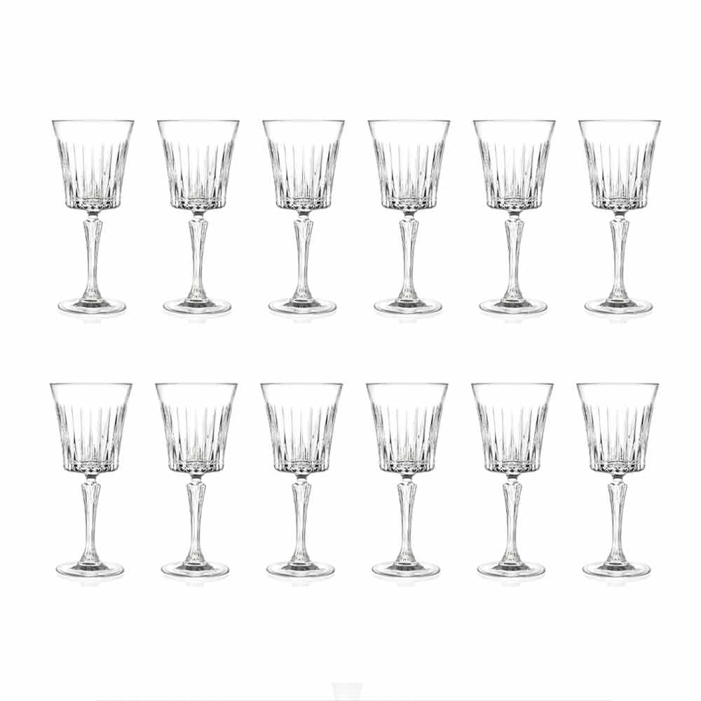This is what happens with this proposal of 12 wine glasses or cocktails with a timeless design with its timeless decoration with deep linear cuts .