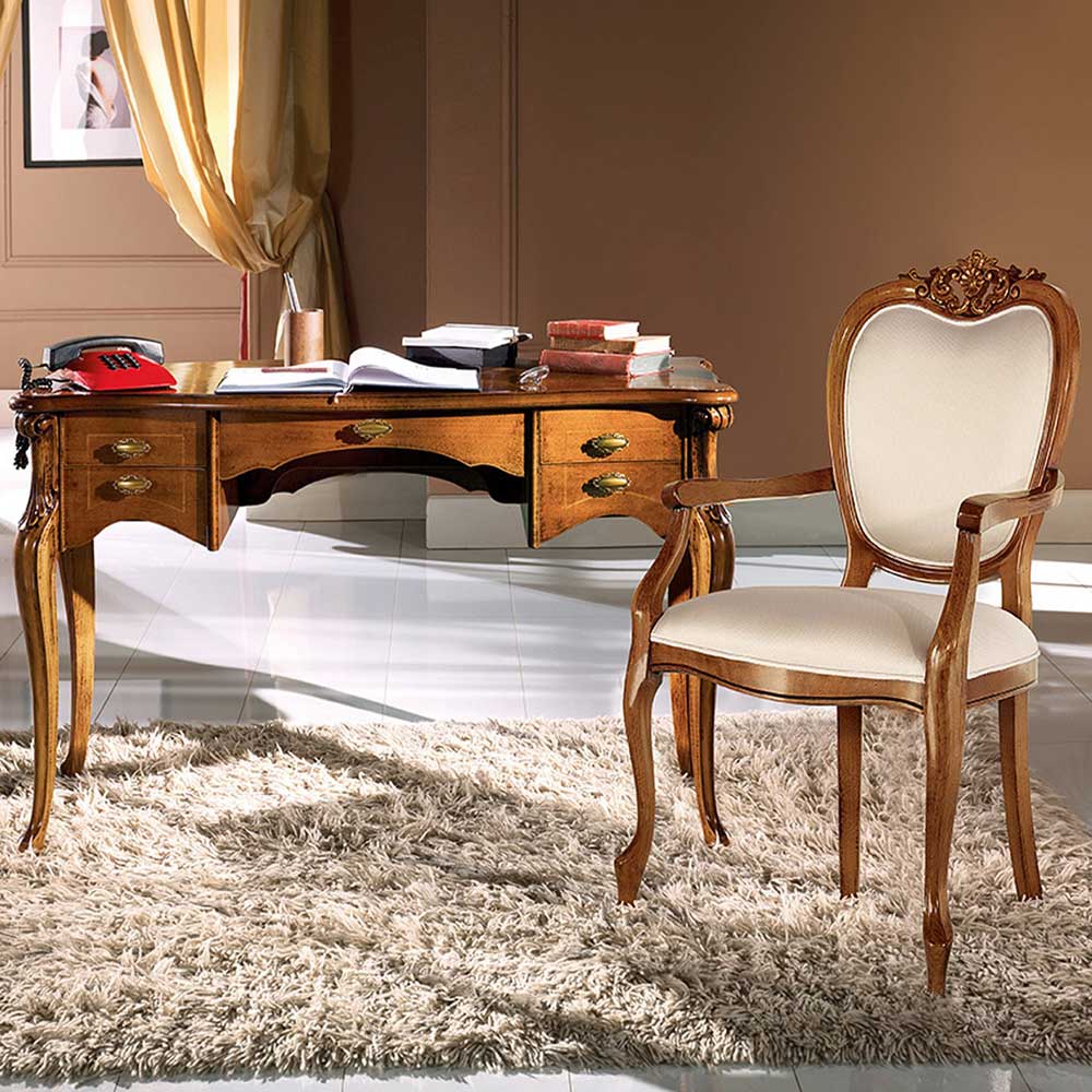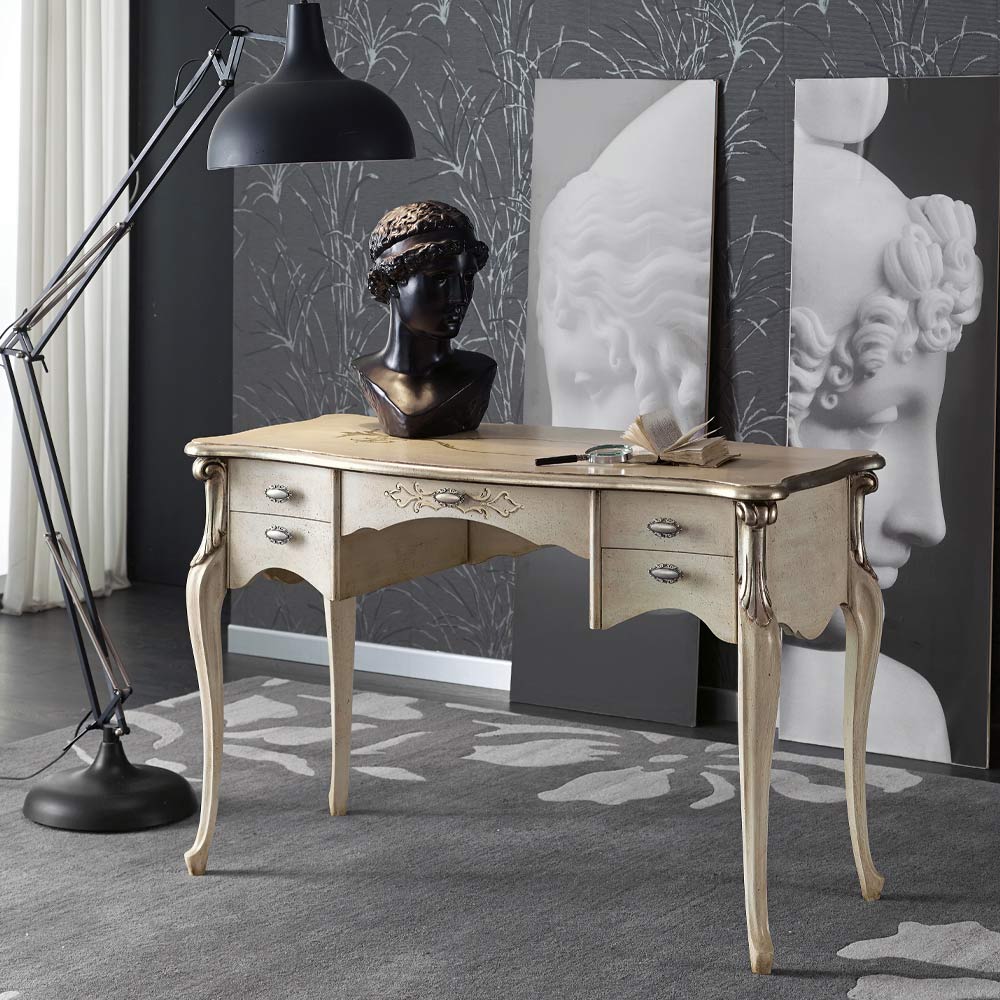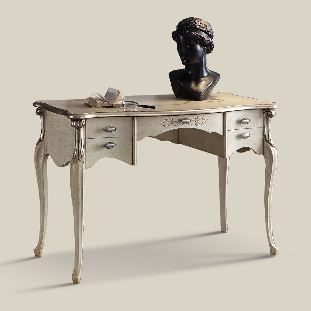 Classic style wooden 5-drawer living room desk Made in Italy.