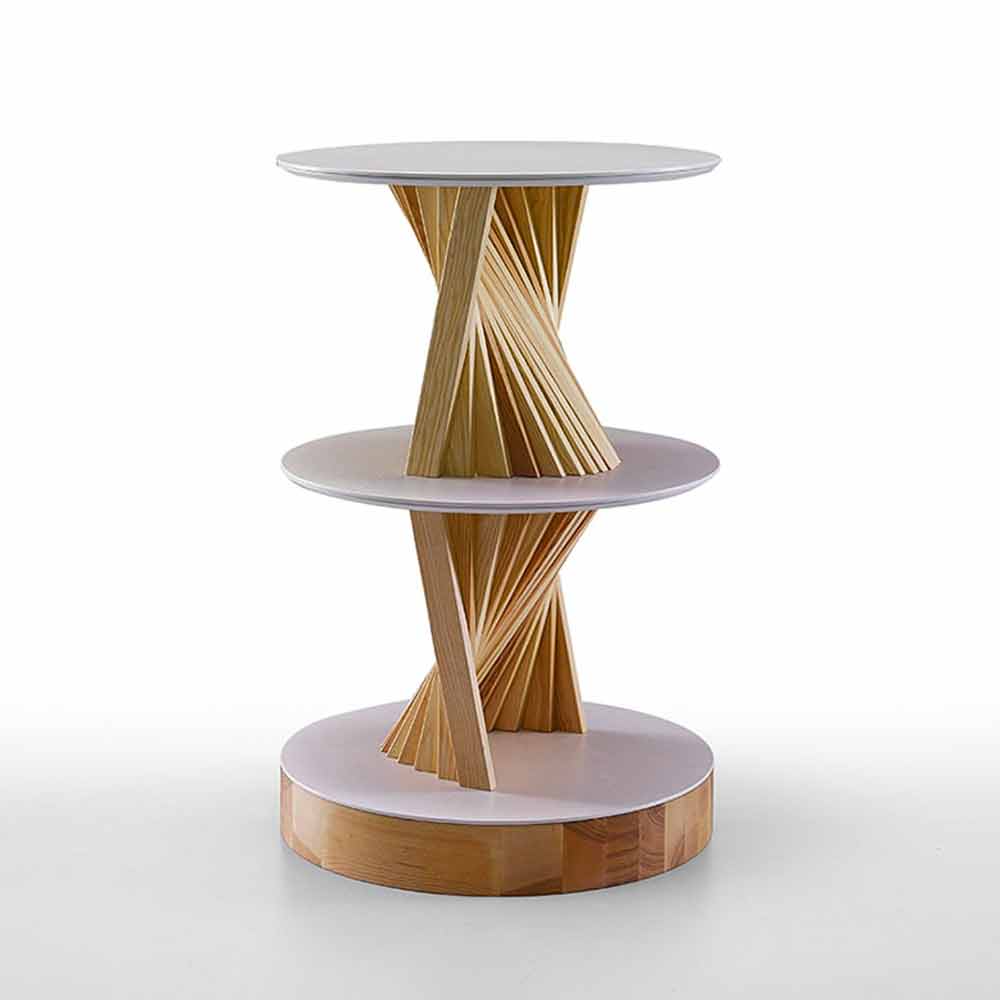 Design Furniture in Wood with Round Shelves in Gres Made in Italy - Aspide