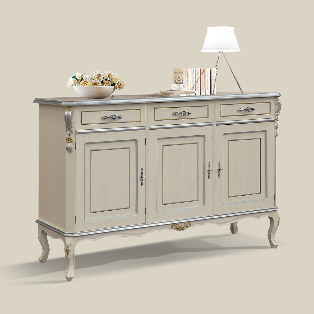 Living room sideboard made of precious wood available in the version with 3 doors and 3 drawers or 4 doors and 4 drawers, adaptable to any furnishing need. Elegant and timeless, this classic style sideboard is ideal for creating impressive environments. Completely made in Italy and handcrafted by skilled master craftsmen , finished with wisdom and taste for elegance. The production is carried out using fine materials , and performing the work by hand with the utmost care and professionalism that distinguishes Made in Italy products.