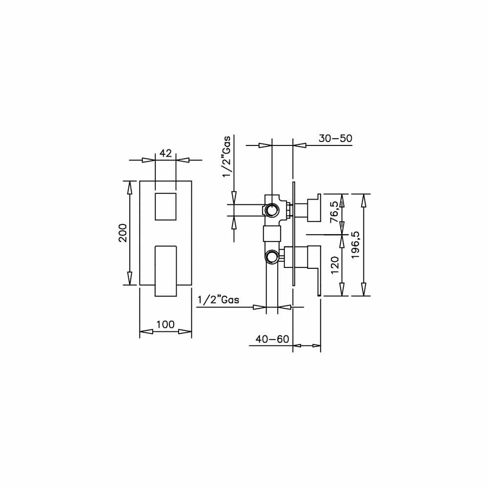 shower mixer with 3-way diverter complete with built-in part and external parts.