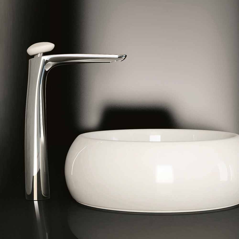 Countertop basin mixer of creative and avant-garde design 330mm high and with a 165mm center distance without waste and without pop-up hole made of brass.