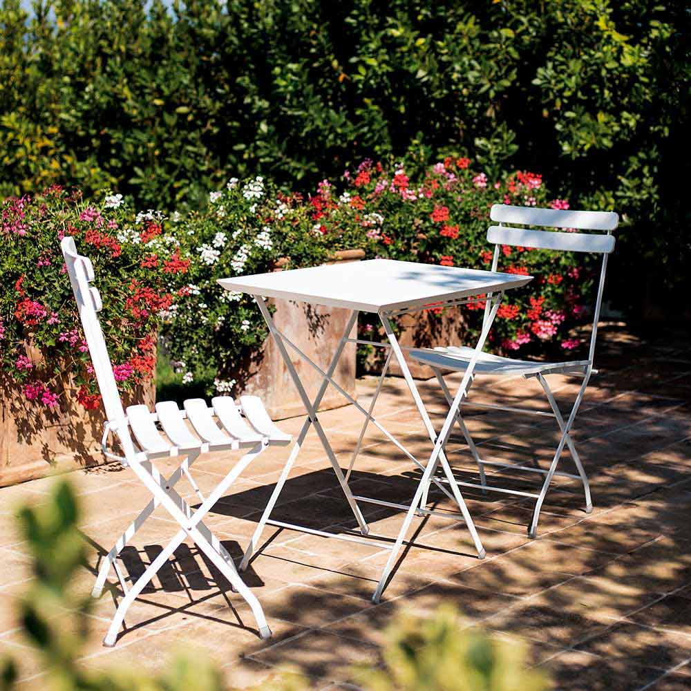 powder-coated galvanized iron painted with thermosetting powders that allow the product to acquire strength and solidity which, together with the minimal design and light lines, make the chair practical and light. Thanks to the wide range of colors available and the possibility of being folded for greater optimization of space, this chair perfectly matches any outdoor situation, from private ones such as gardens and terraces to environments such as bars and restaurants.