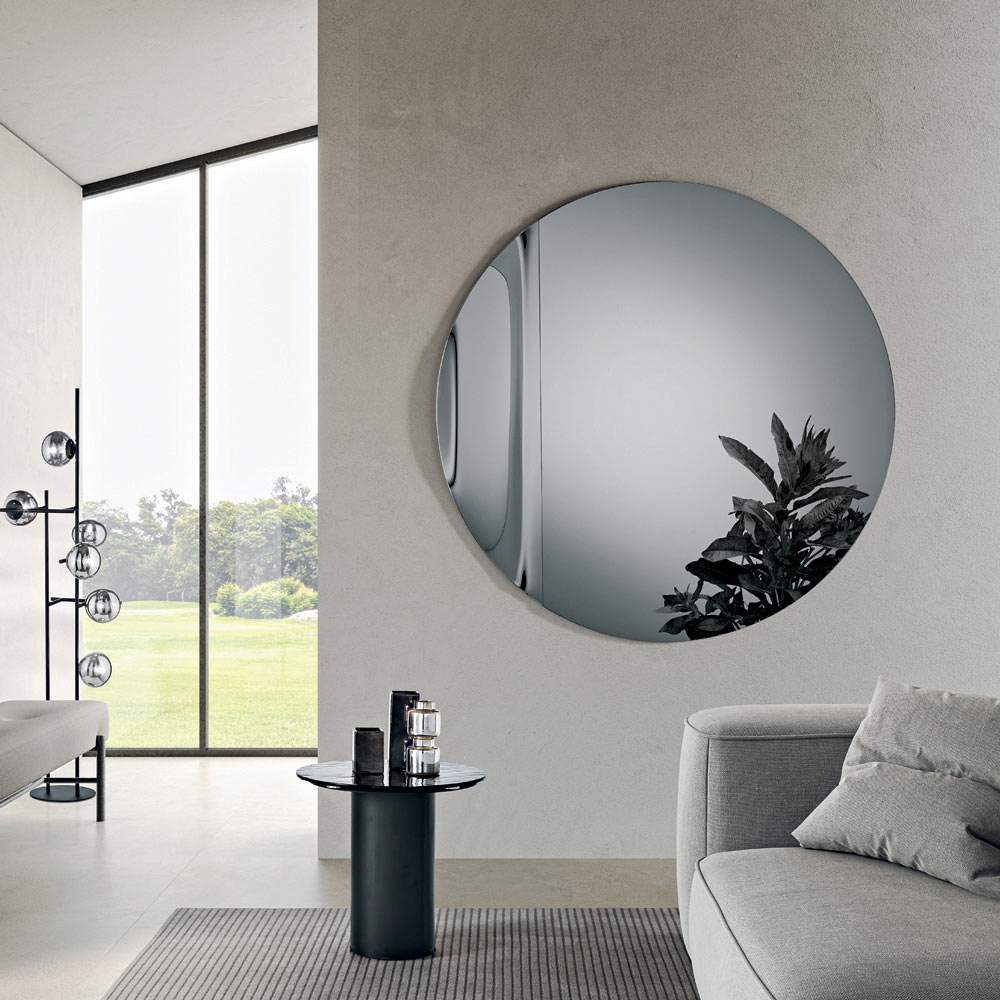 Thanks to its design balanced between geometry and movement, this mirror becomes a sophisticated furnishing accessory capable of enriching the wall with discretion and elegance, adapting perfectly to modern and contemporary environments.