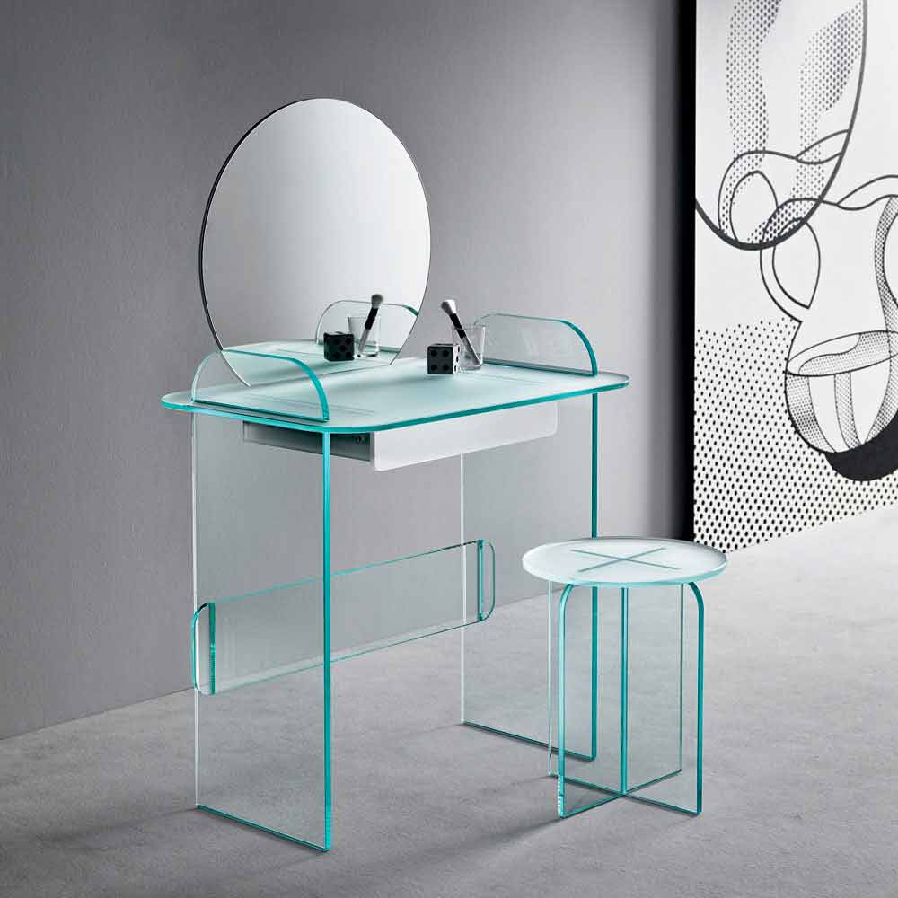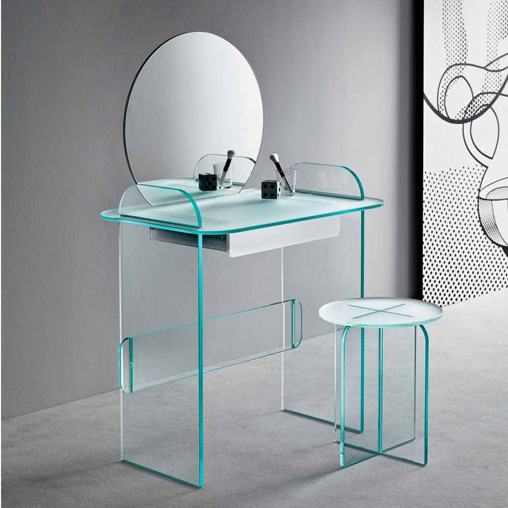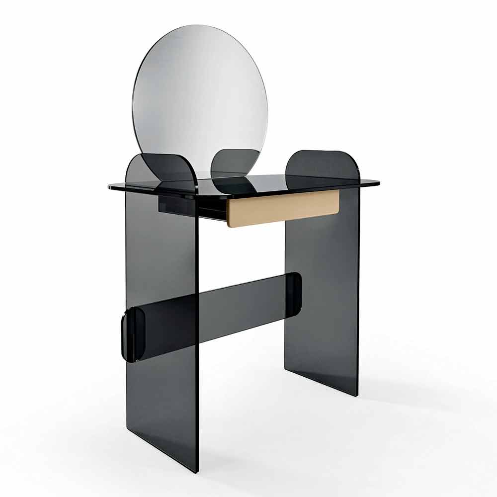 Dressing table with mirror and drawer in extra-clear, smoked or green glass made in Italy.