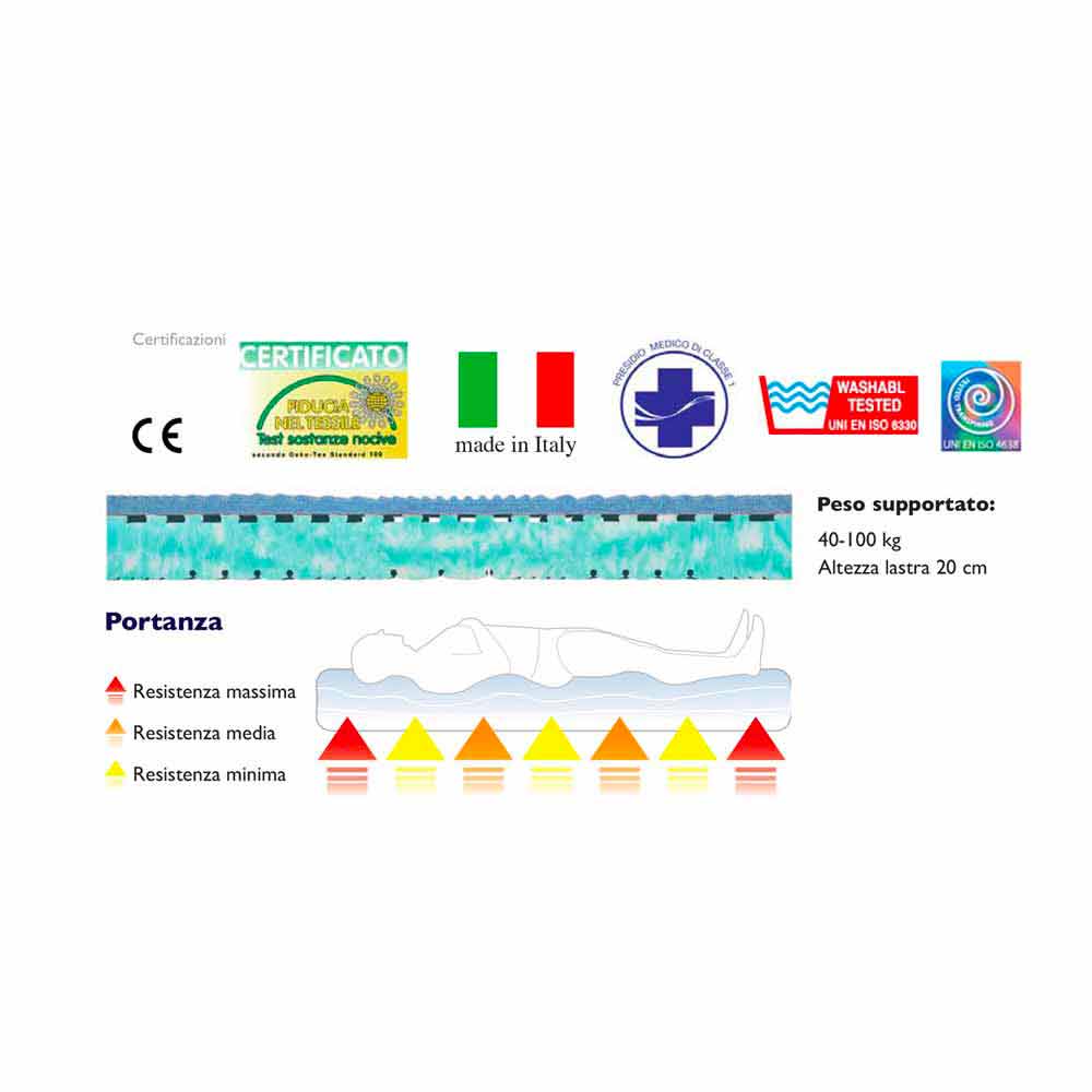 For this reason we recommend the use of this mattress, certified as a class I medical device , combined with a specially designed cover with integrated topper housing.
