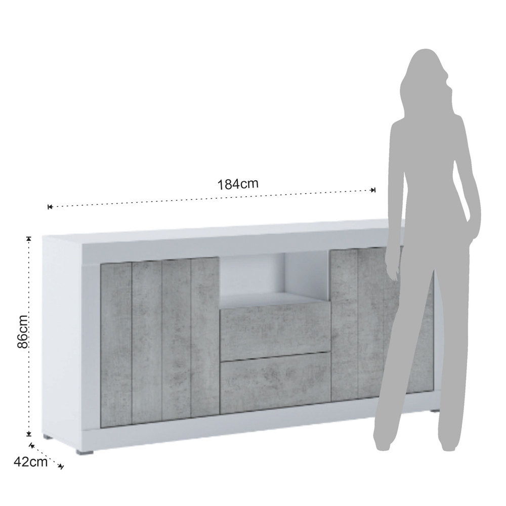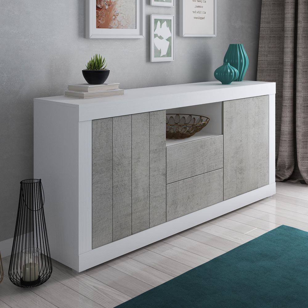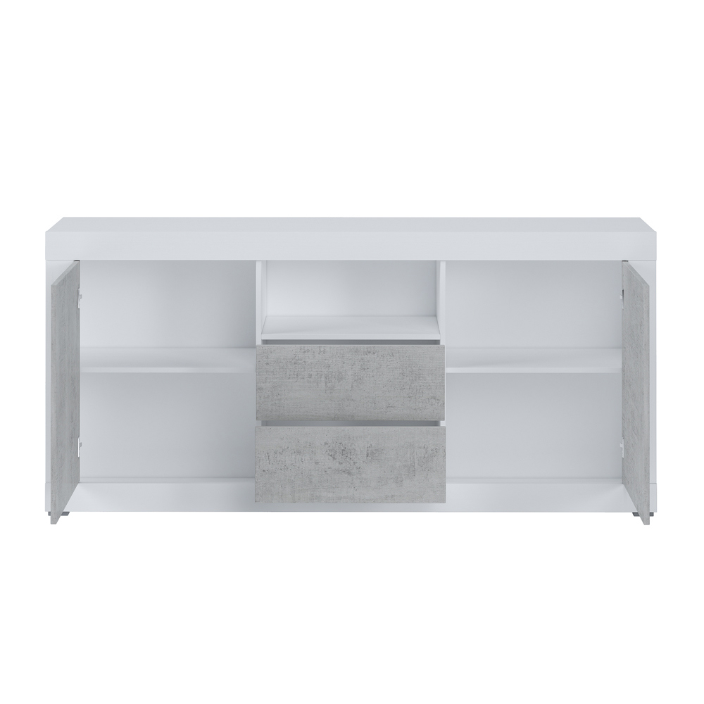 Cement finish melamine , with 2 doors and 2 drawers.