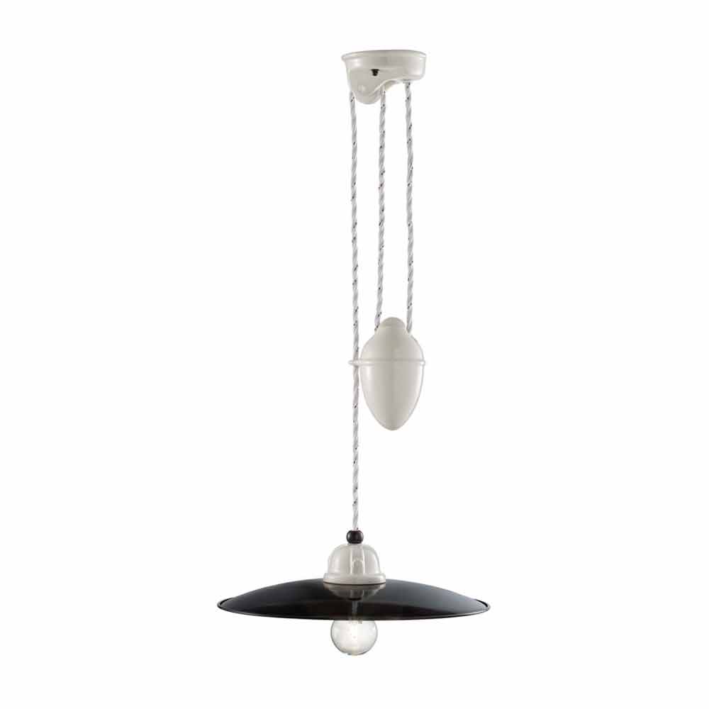 Lamp made of glossy black ceramic, as regards the external finish of the diffuser, while the structure, frame and wire have a glossy white finish. Melissa is available in different sizes.