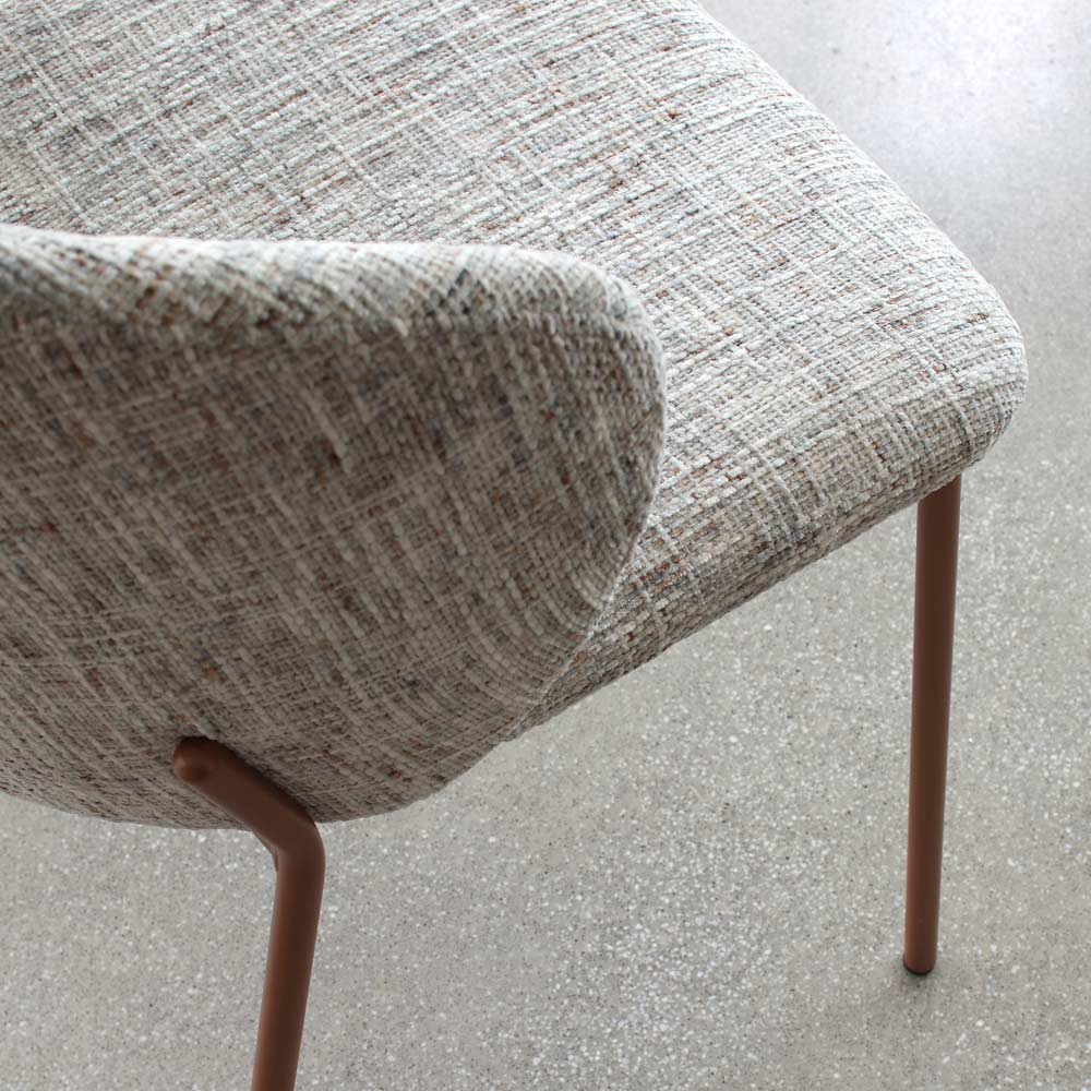 Made in Italy. Armchair with a modern design, defined by soft lines that guarantee comfort and versatility. It is characterized by a covering available in numerous color and material variations, which allow it to adapt to different furnishing styles. The powder-coated metal legs support an upholstered body, with matching stitching that contributes to the clean and elegant design of the product. This collection is ideal for those looking for furnishing elements with a contemporary design that do not compromise comfort.
