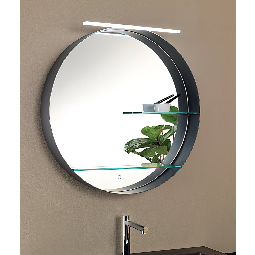 Metal Bathroom Mirror with 2 Glass Shelves Made in Italy - Einstein