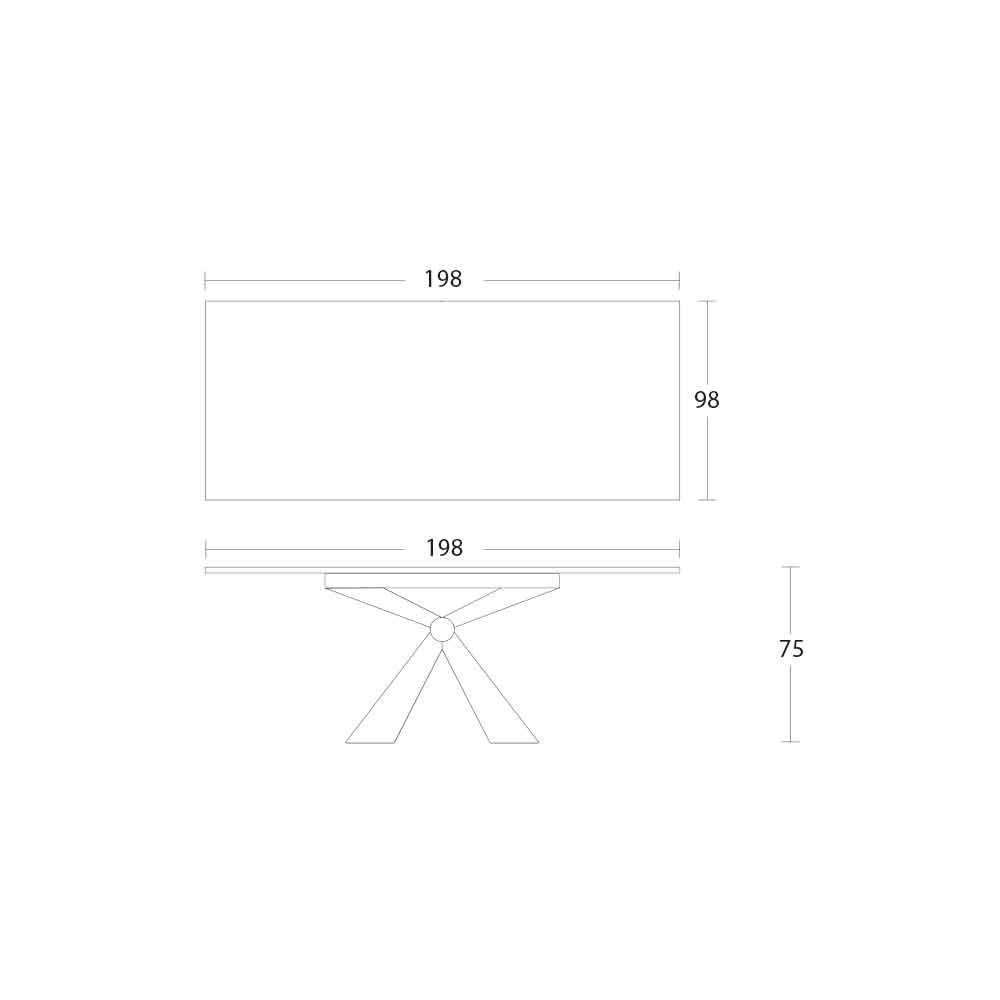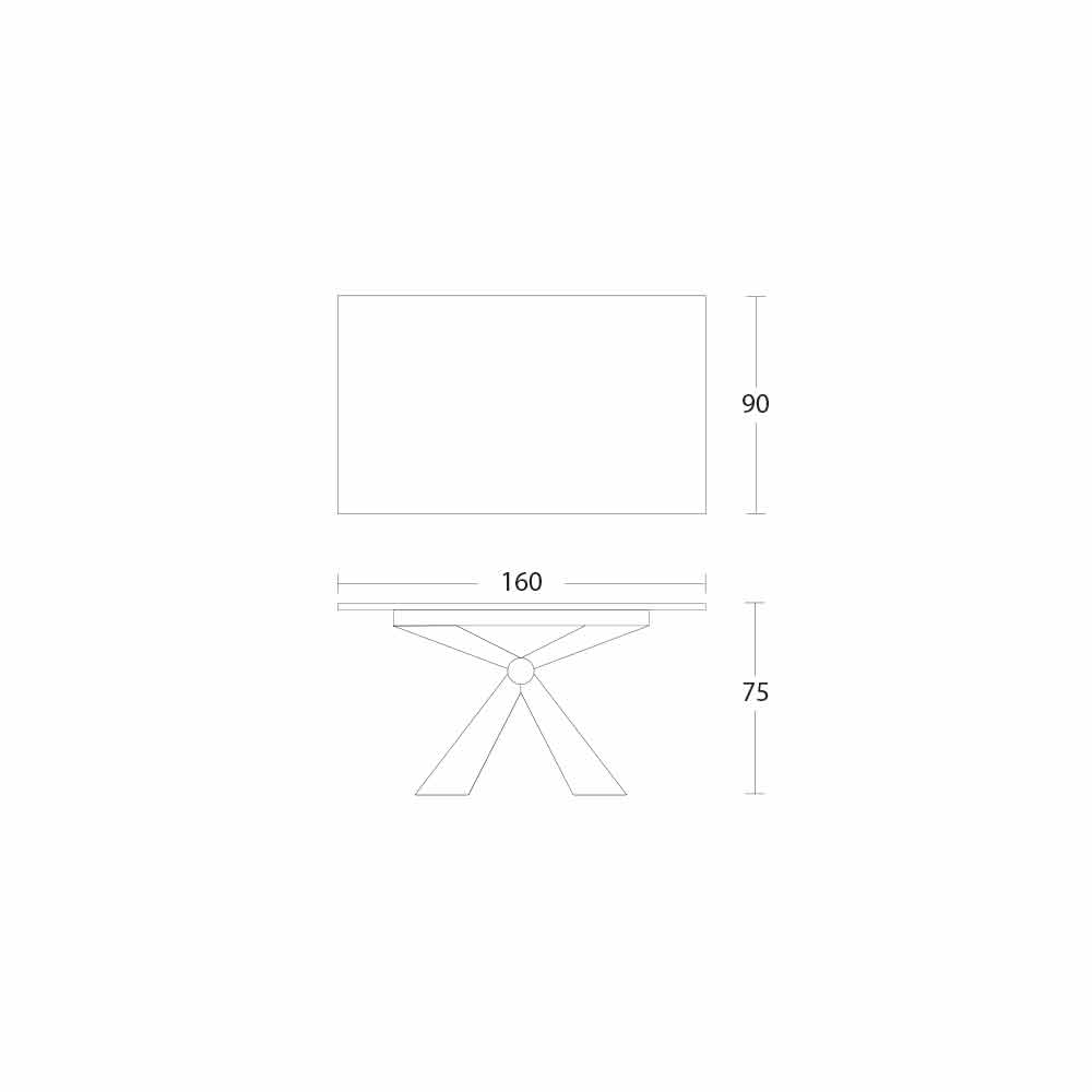 This rectangular-shaped dining table has an MDF panel top with laminam ceramic on the surface, available in various finishes, and an embossed graphite painted metal base with 4 legs that converge in the center in a metal support knot that becomes the peculiarity of the design of the complement, as well as guaranteeing its high stability.