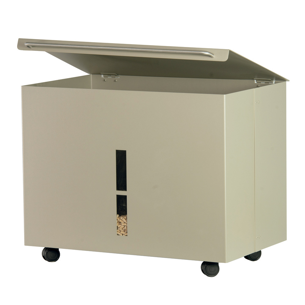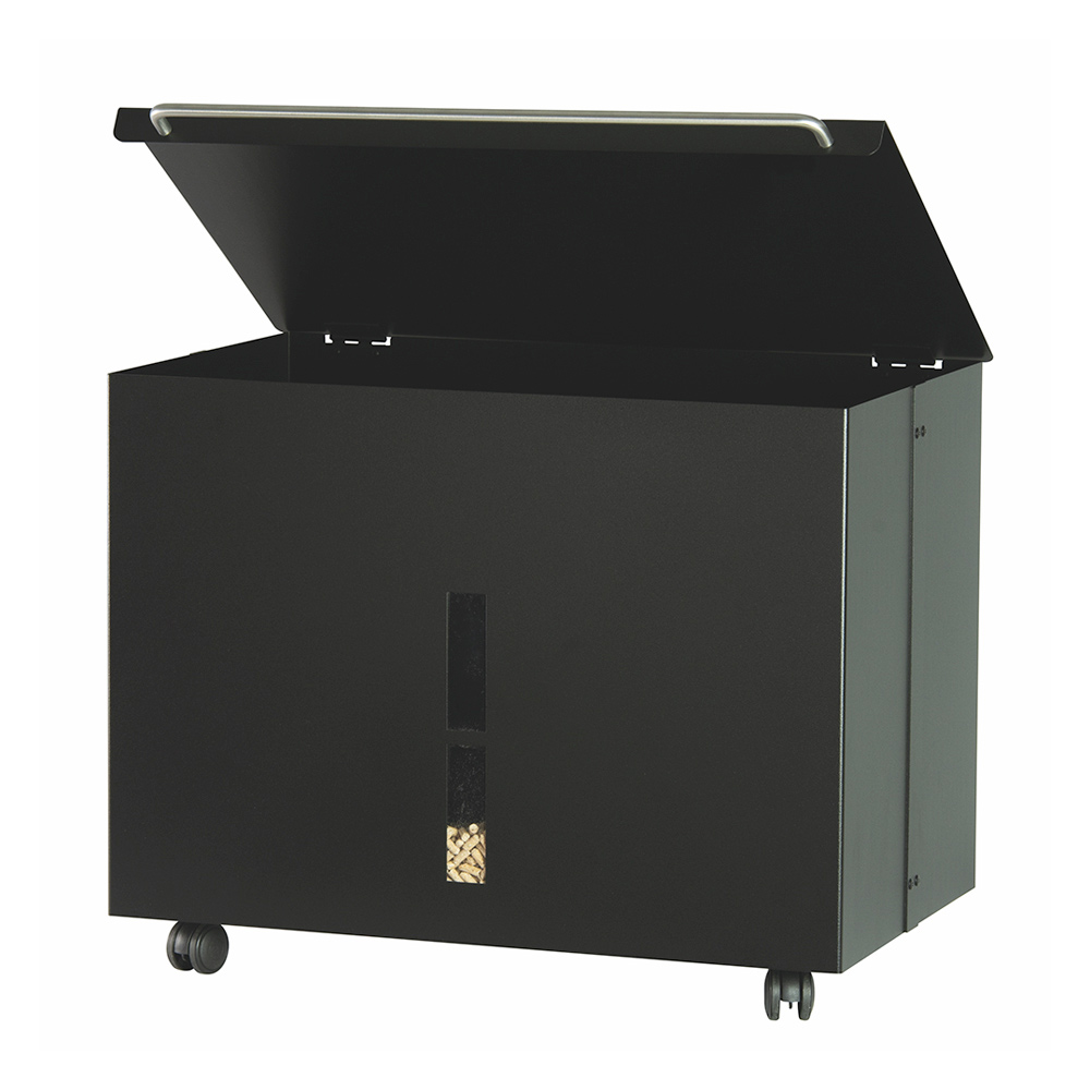 This metal pellet holder is the embodiment of modern functionality meets minimalist design. Its solid structure, made from high quality metal is designed to offer a discreet yet sophisticated storage solution for the pellets in your fireplace or stove.