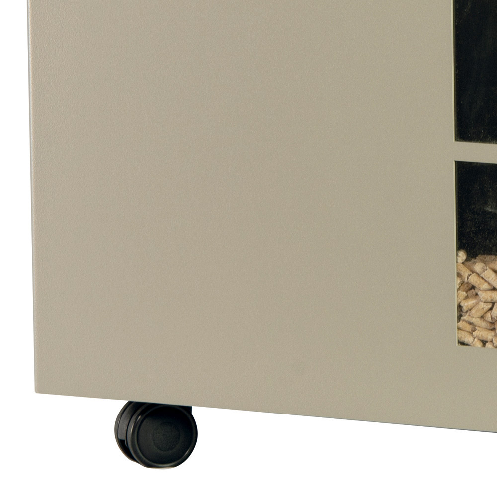 Equipped with wheels , this pellet holder can be moved with ease, ensuring that refueling your fireplace or pellet stove is always a simple and effortless activity. Its design is as practical as it is pleasing to the eye, making it a perfect complement to any modern and style-conscious environment.