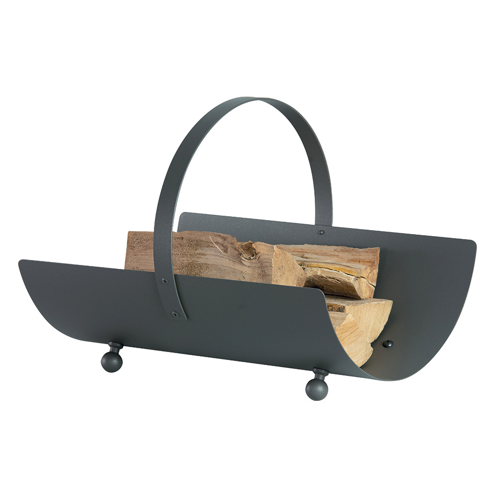 This elegant metal log holder is an ideal solution for adding a touch of class and practicality to your fireplace environment. Its minimalist and modern design, with a curved silhouette and an elegant handle that facilitates transport, makes it a perfect complement to any interior style. The finish is sophisticated and durable, ideal for withstanding the passage of time and frequent use. The spherical feet add a unique design detail and ensure that the container can be moved easily and without scratching the floor.