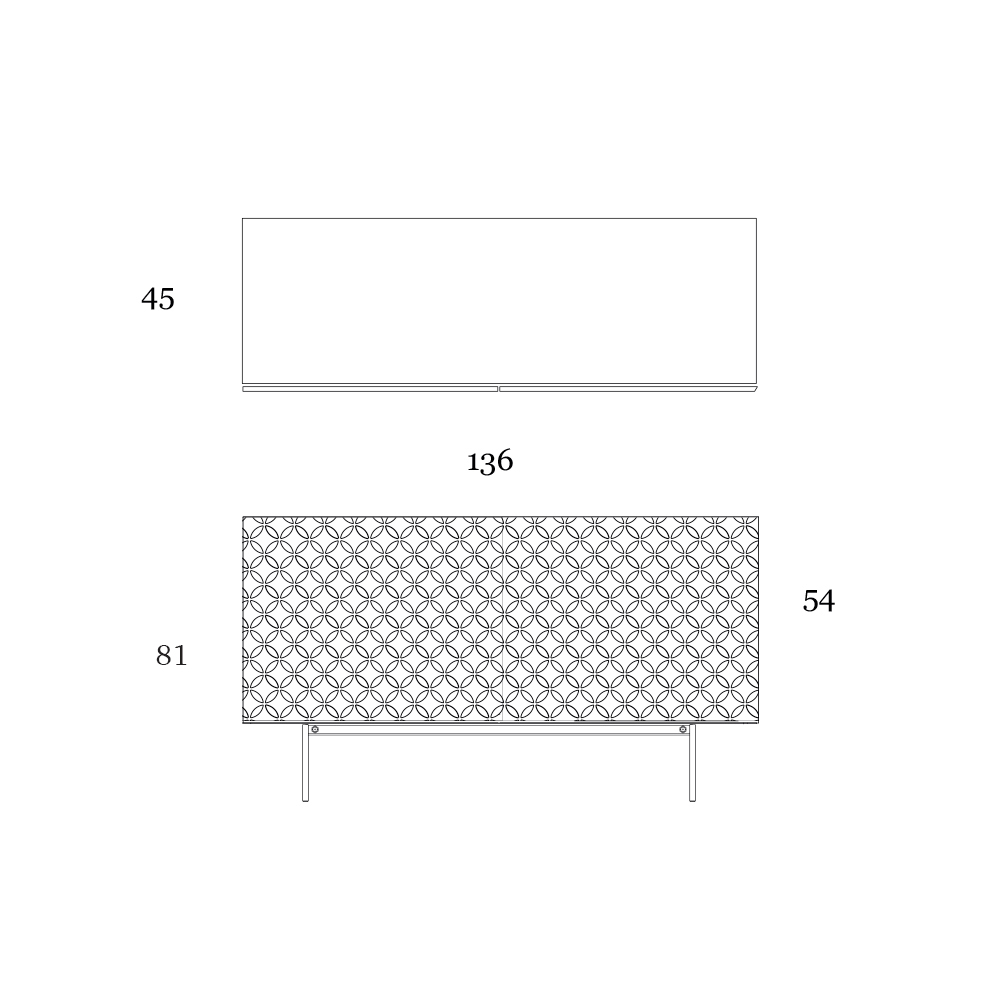 Available sizes:- length: 136 cm x depth: 45 cm x height: 81 cm - 2 doors