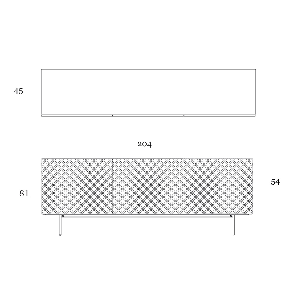 - length: 204 cm x depth: 45 cm x height: 81 cm - 3 doors