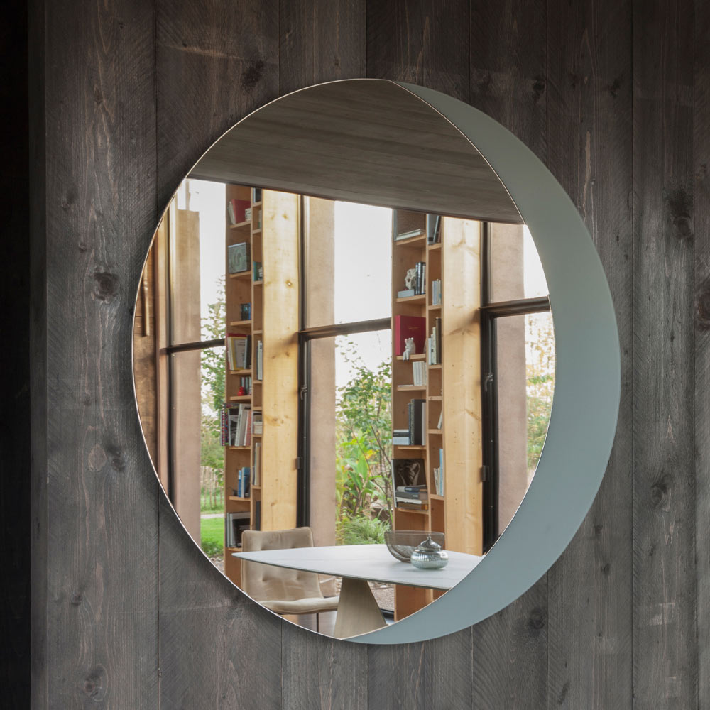 Round mirror with solid color lacquered glass bottom Made in Italy