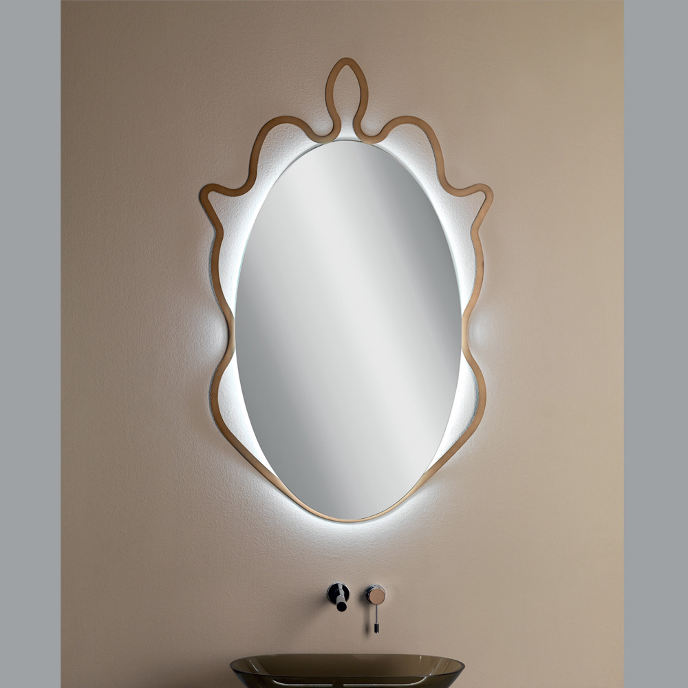 This Italian artisan mirror is the quintessence of functional elegance , a tribute to the mastery of design that enhances every space with its presence. Its sinuous and organic profile, which echoes the soft shapes of nature, is framed by a refined outline in precious metal , which transform it into a true piece of art.