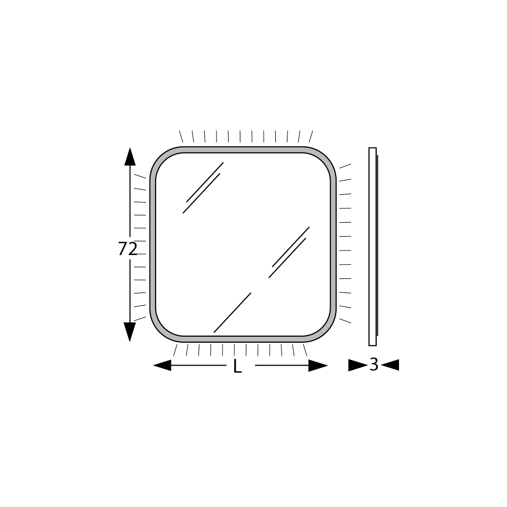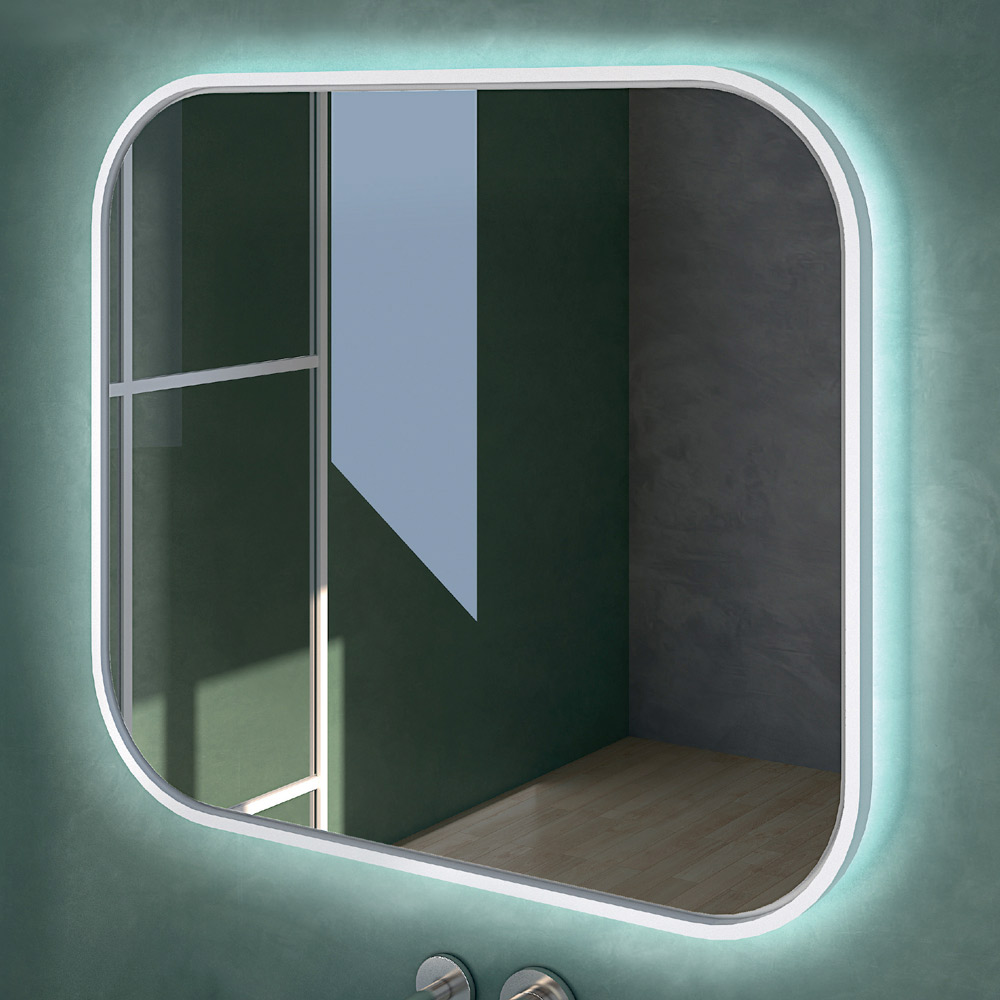 The rounded shape with refined corners makes this mirror a versatile and attractive addition to a variety of spaces, from the bathroom to the bedroom, or as a distinctive accent in a living area. LED technology not only emphasizes the unique design but is also energy efficient , ensuring long-lasting lighting.