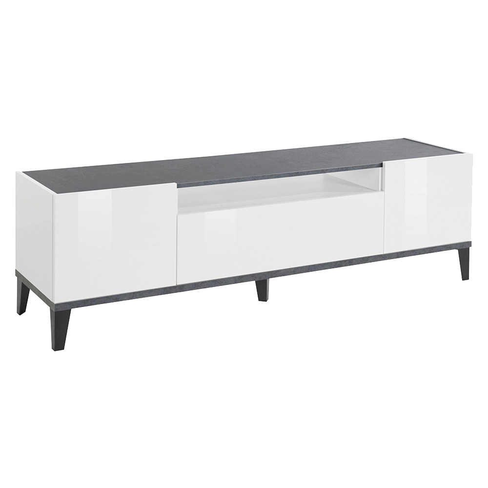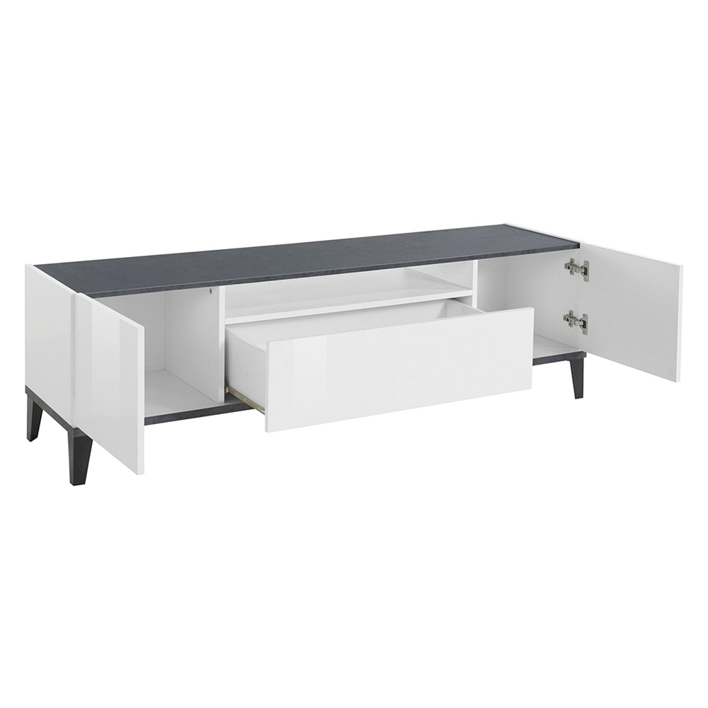 Top and bottom of the cabinet are in slate or wood effect finish and create a pleasant contrast with the rest of the product for a simple and interesting play of colors. It is a piece of furniture with