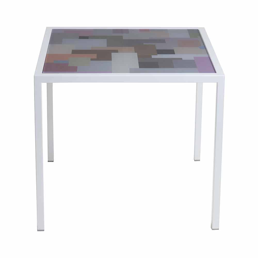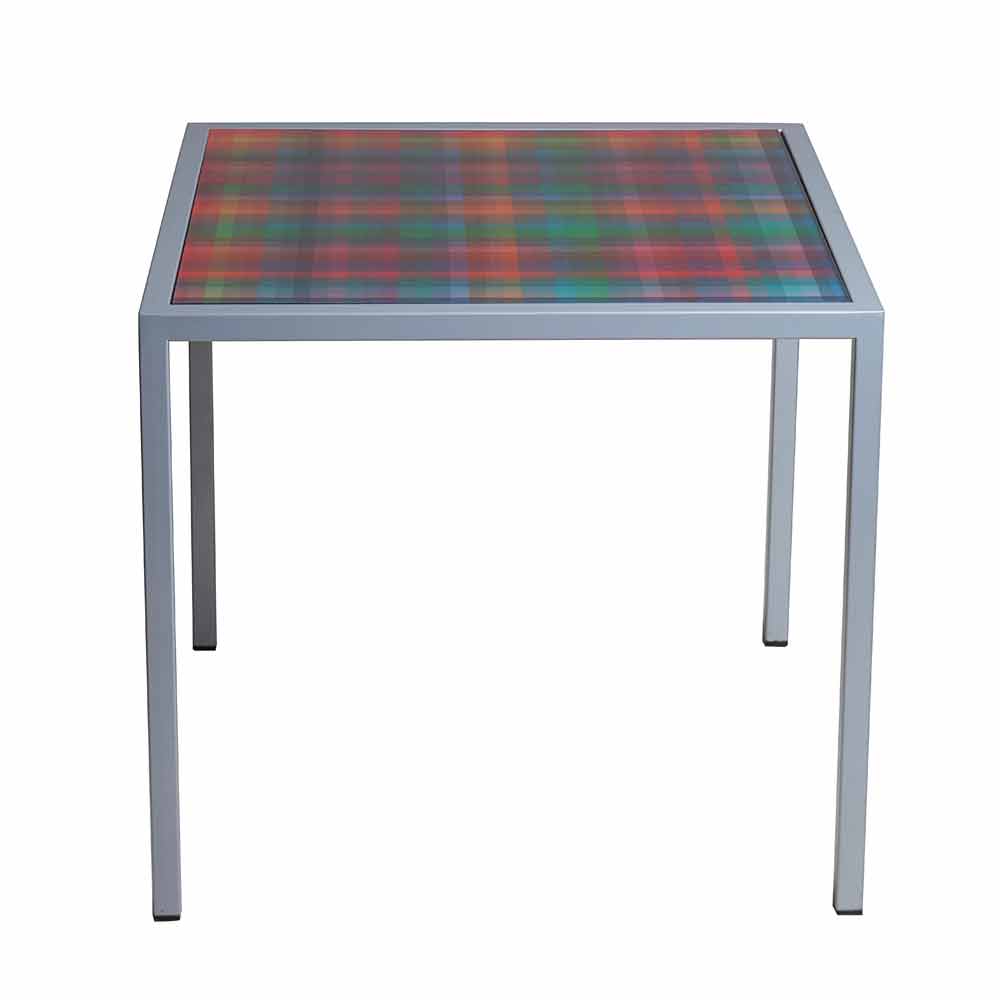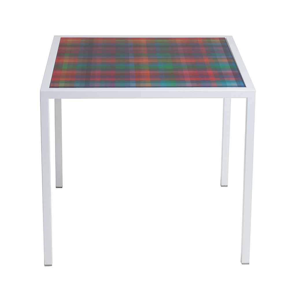 Nina is a design coffee table with lacquered metal structure with a choice of silver or white colors. The 0.8 cm thick top is made of retro printed polycarbonate, all made in Italy.