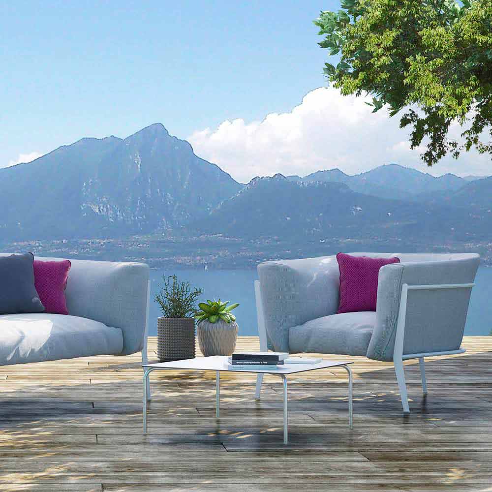 Modern outdoor armchair, aluminum structure and removable fabric, made in Italy design.