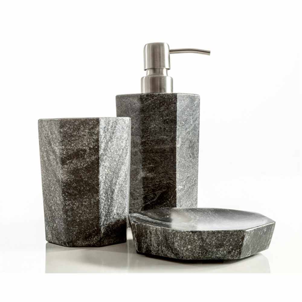 Set in gray veined marble of modern Montafia bathroom accessories