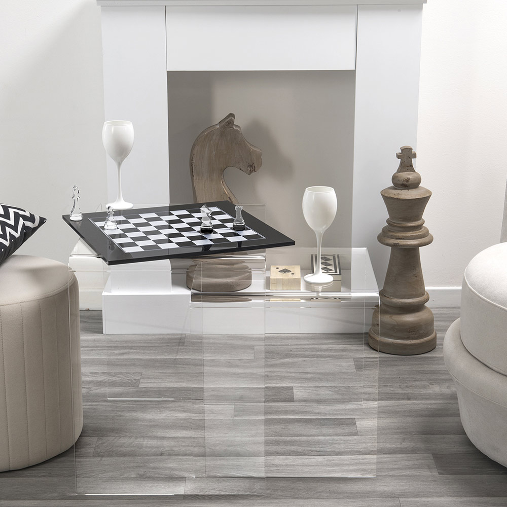 modern and elegant piece of furniture and as a perfect gift idea for game enthusiasts. Peculiar characteristics of this plexiglass chessboard are the brightness and brilliance that remain constant and unaltered over time.