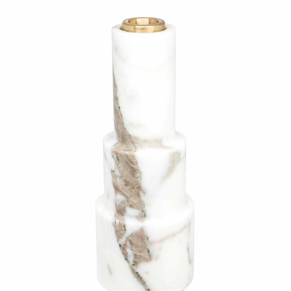 Tall modern candle holder in white Carrara marble and brass Made in Italy.