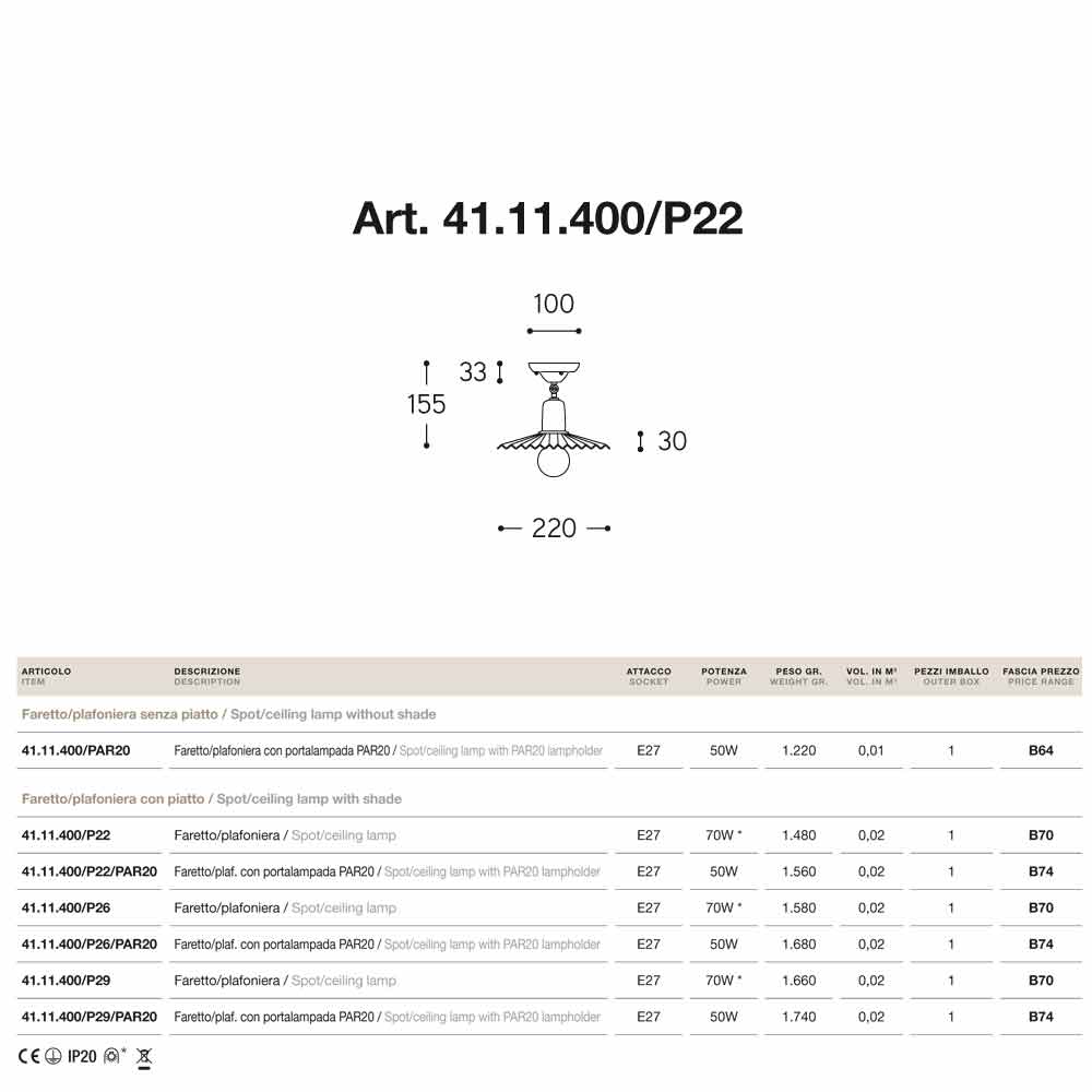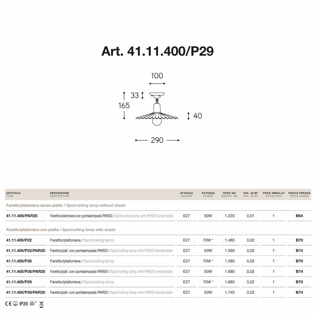 Sandra handmade ceramic spotlight applique with vintage effect by Ferroluce