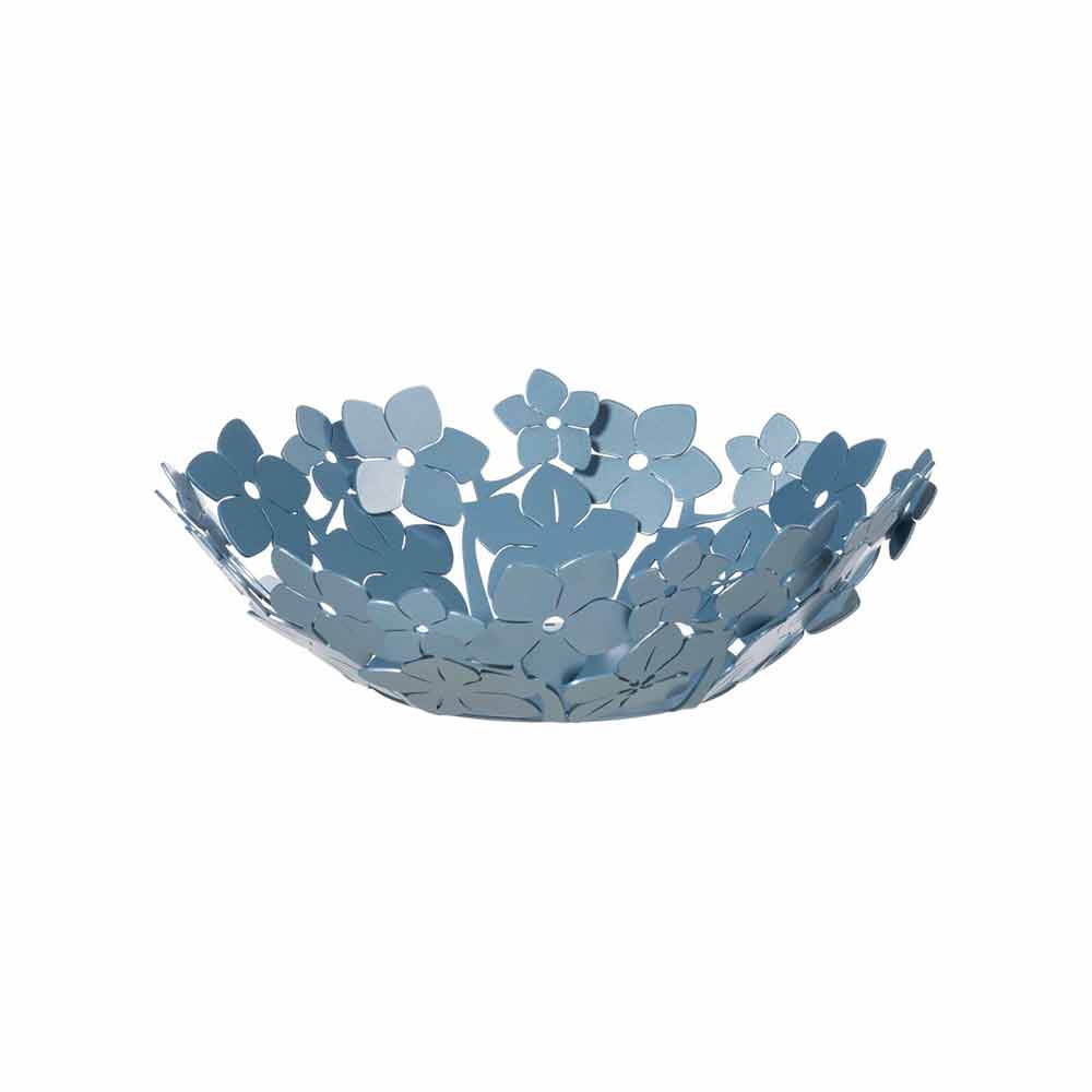 Centerpiece with modern style flowers, handcrafted in Italy in white iron, marble, light blue or mud.