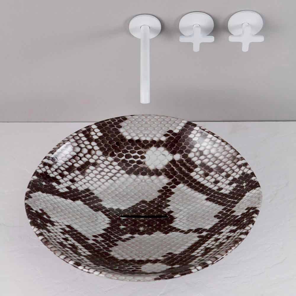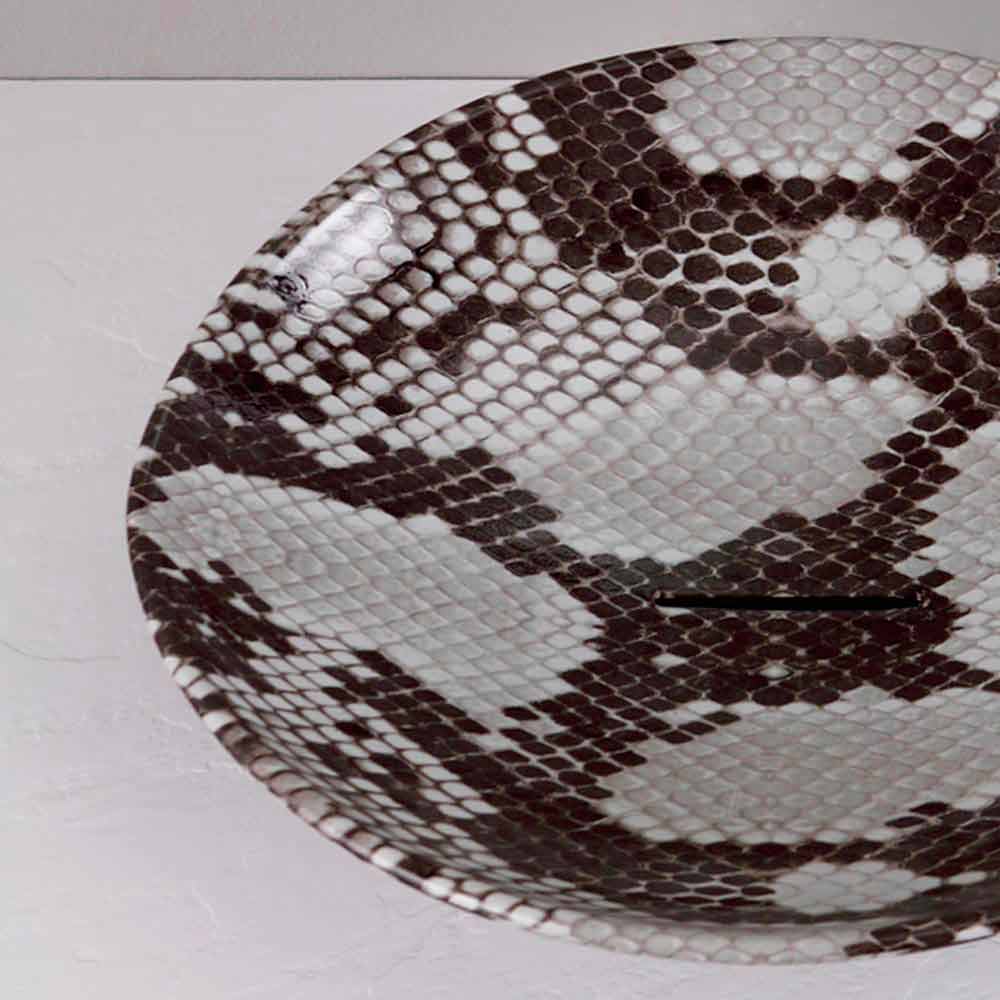 Modern ceramic countertop sink Animals, cobra pattern, made in Italy