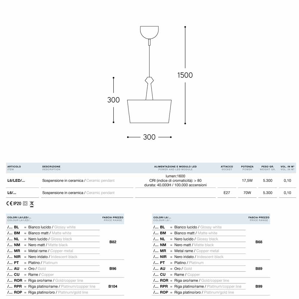 I Lustri 6 is available in different finishings and with standard E27 light bulb socket or LED light.