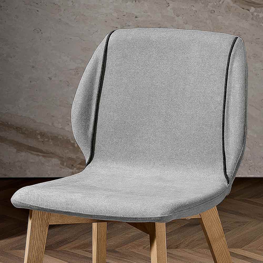 Transform your dining room into a more comfortable and elegant space with the modern monocoque chair with a seat covered in colored water-repellent fabric with piping available in different color variants:
