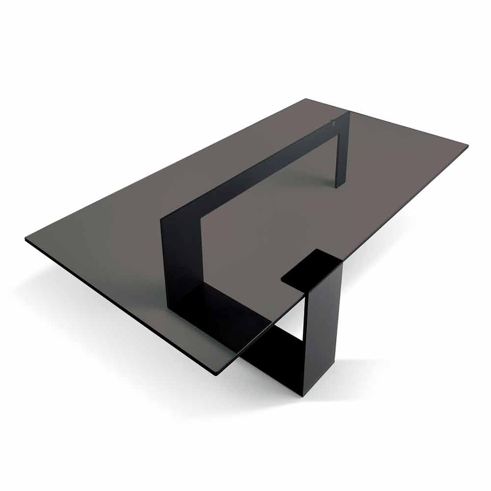 Rectangular modern design coffee table with smoked glass top and metal base, made in Italy.