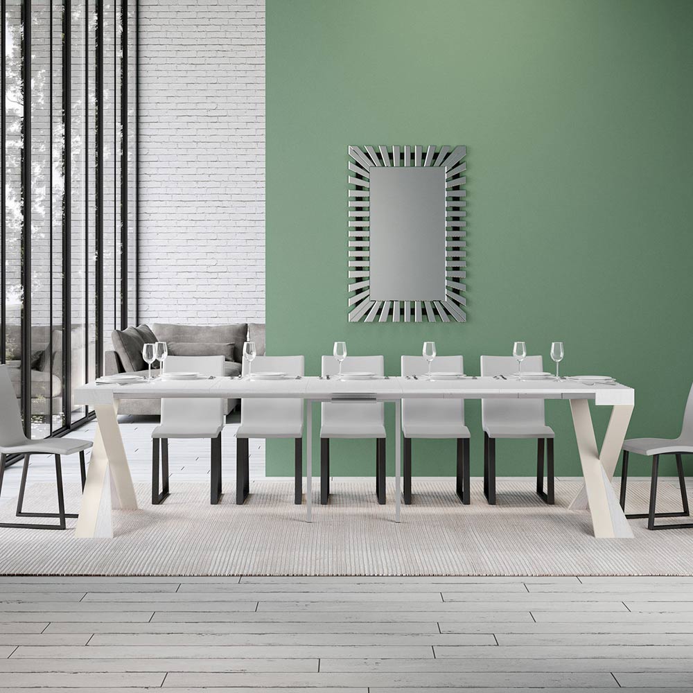 Modern Console Extendable to 300 cm with White Frame Made in Italy - Mirror