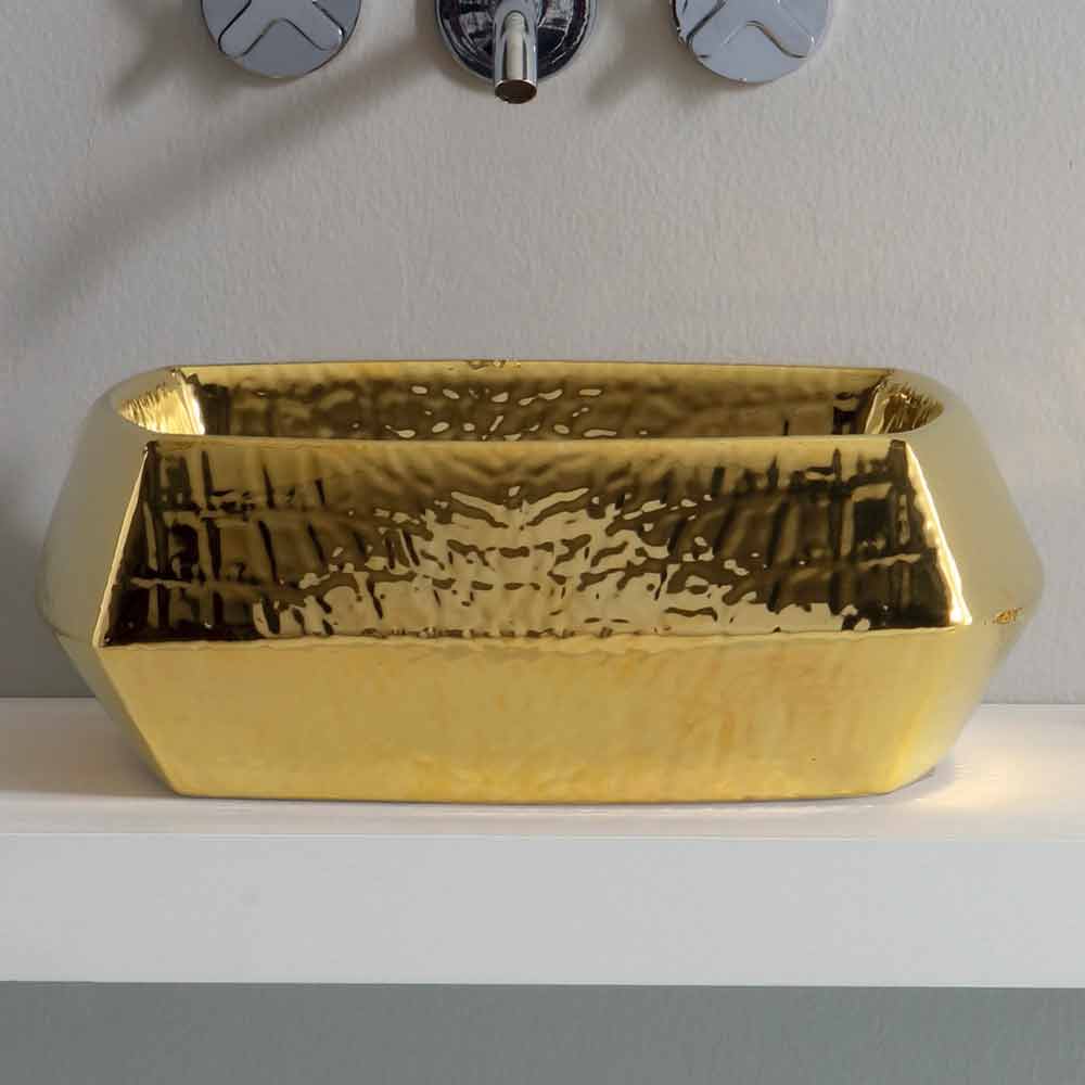 Design countertop washbasin in gold ceramic made in Italy Simon