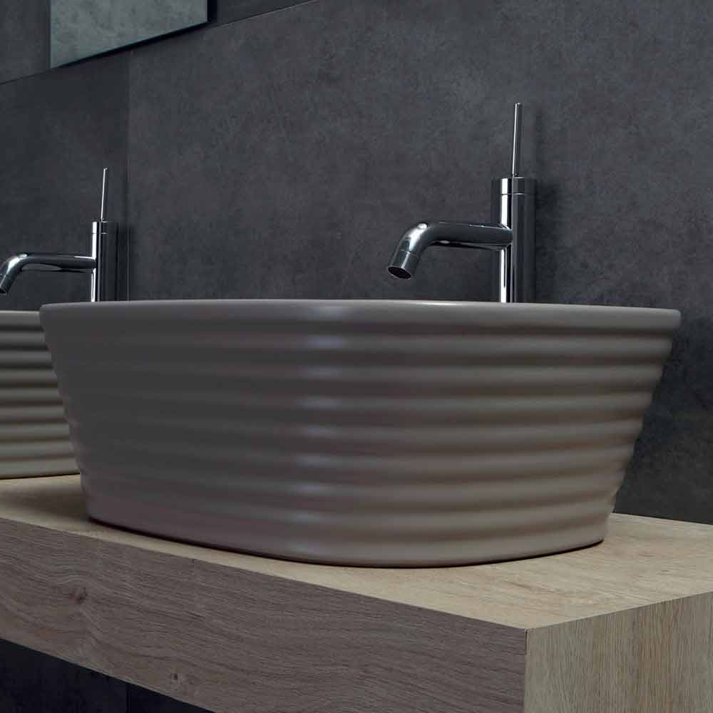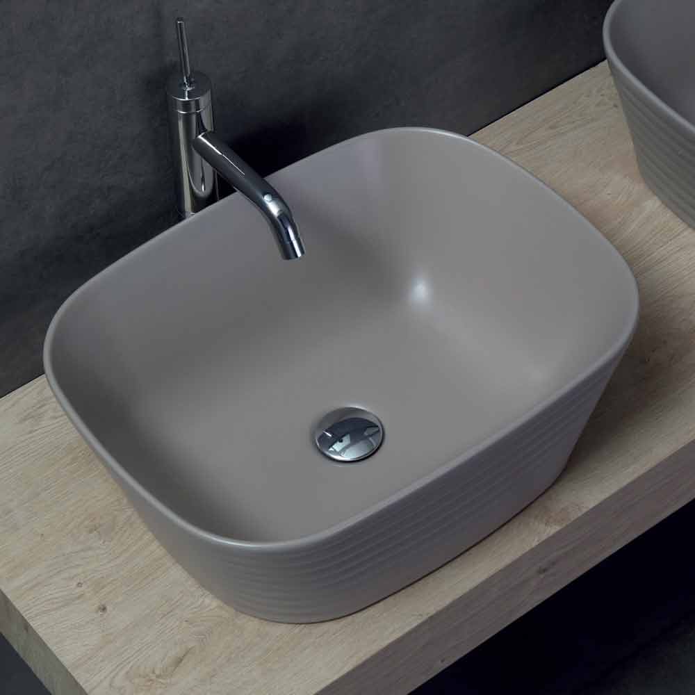 The countertop sink Trabia is able to value the surface or the furniture on which it is placed. His design is simple but with a careful attention to detail. It can be used without fear of ruining the surface, thanks to the material of which it is composed, the vitreous china. This material is a kind of glazed ceramic cooked at 1200°, resistant to acid, heat, bumps ad scratches. It is hygenic and easy to clean and also it does not fade over time.