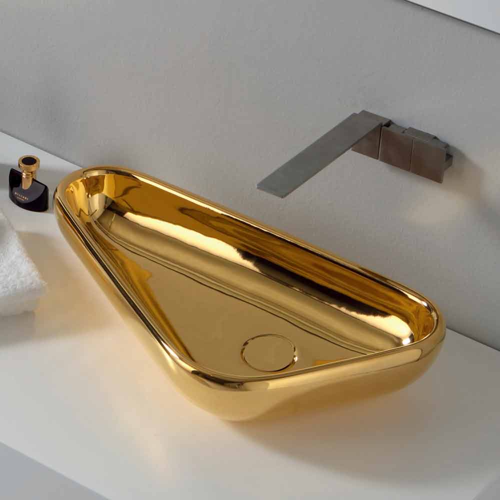 Sofia modern gold ceramic countertop washbasin made in Italy