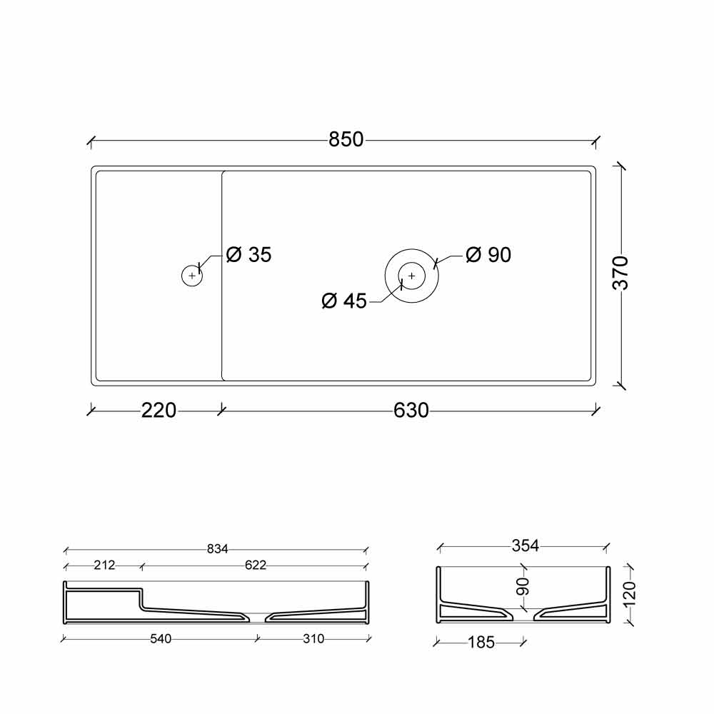 As an option it is possible to have the round brass siphon with chrome finish and it is also possible to have the Hide 85x37 washbasin with hole or without hole for the taps, for more information do not hesitate to contact clienti@viadurni.it .