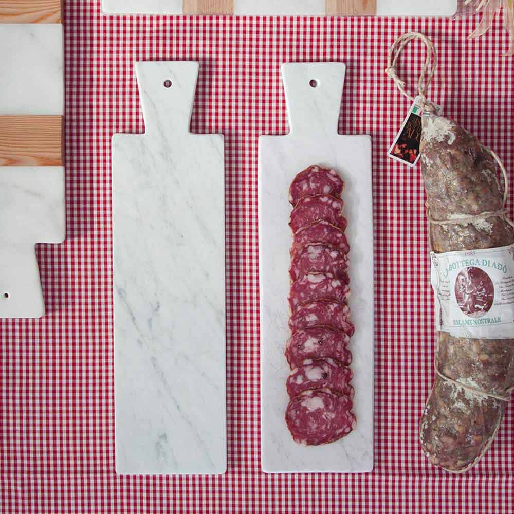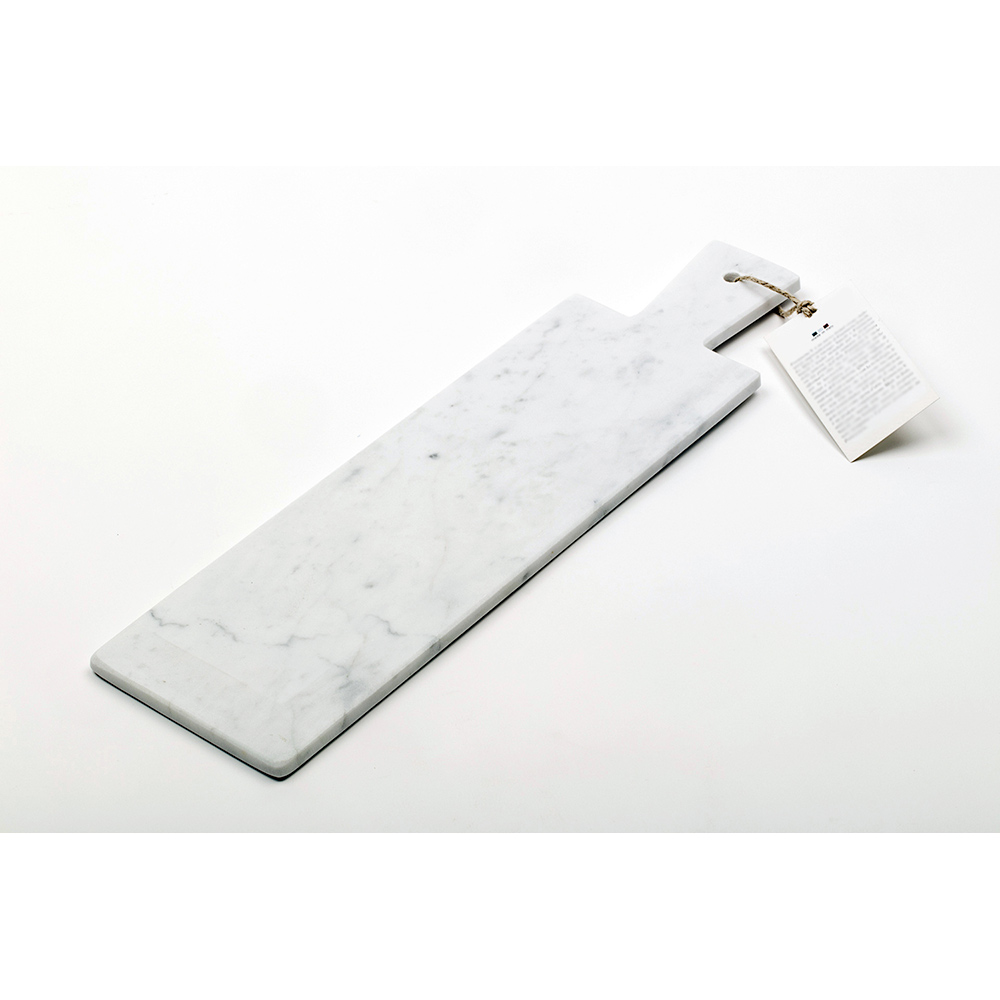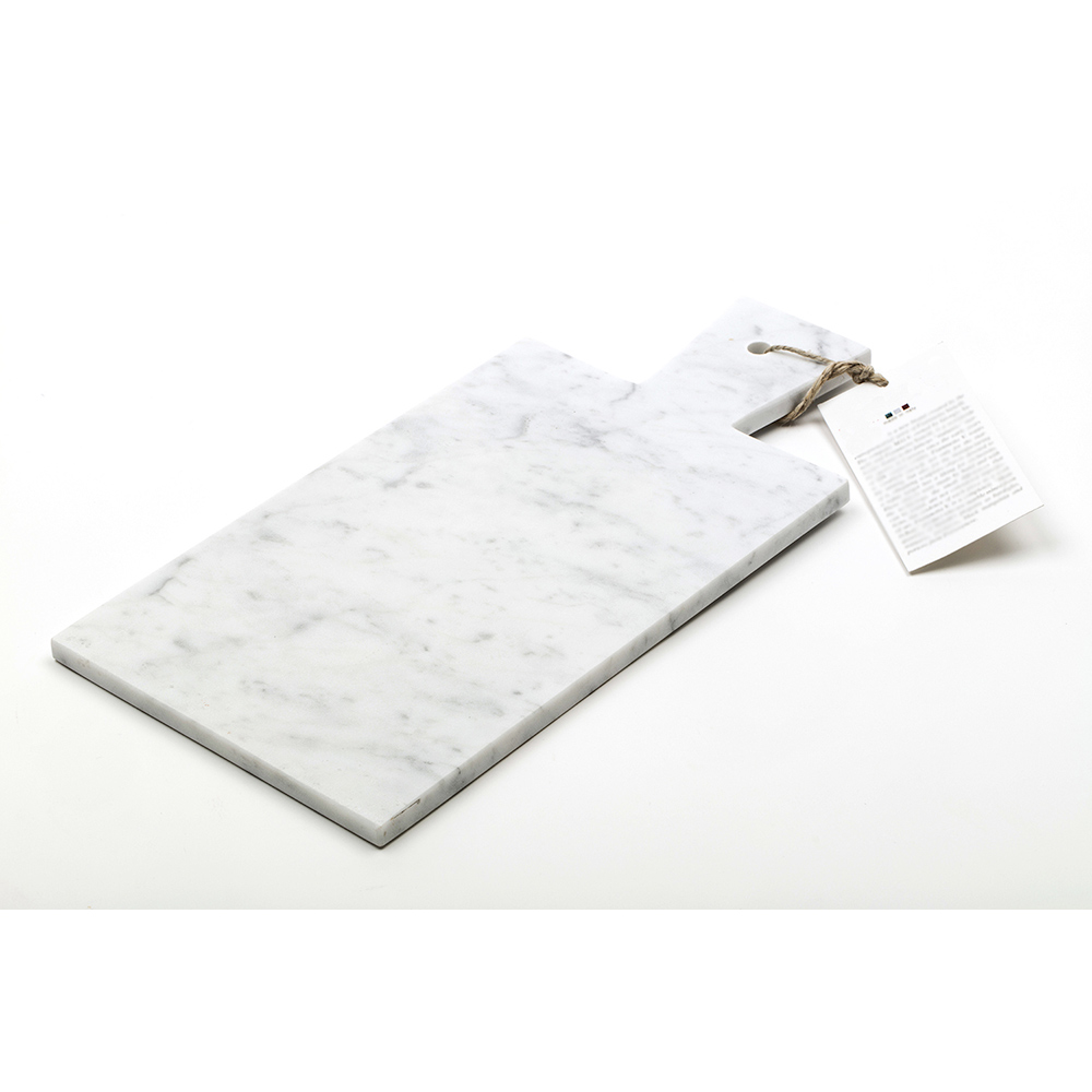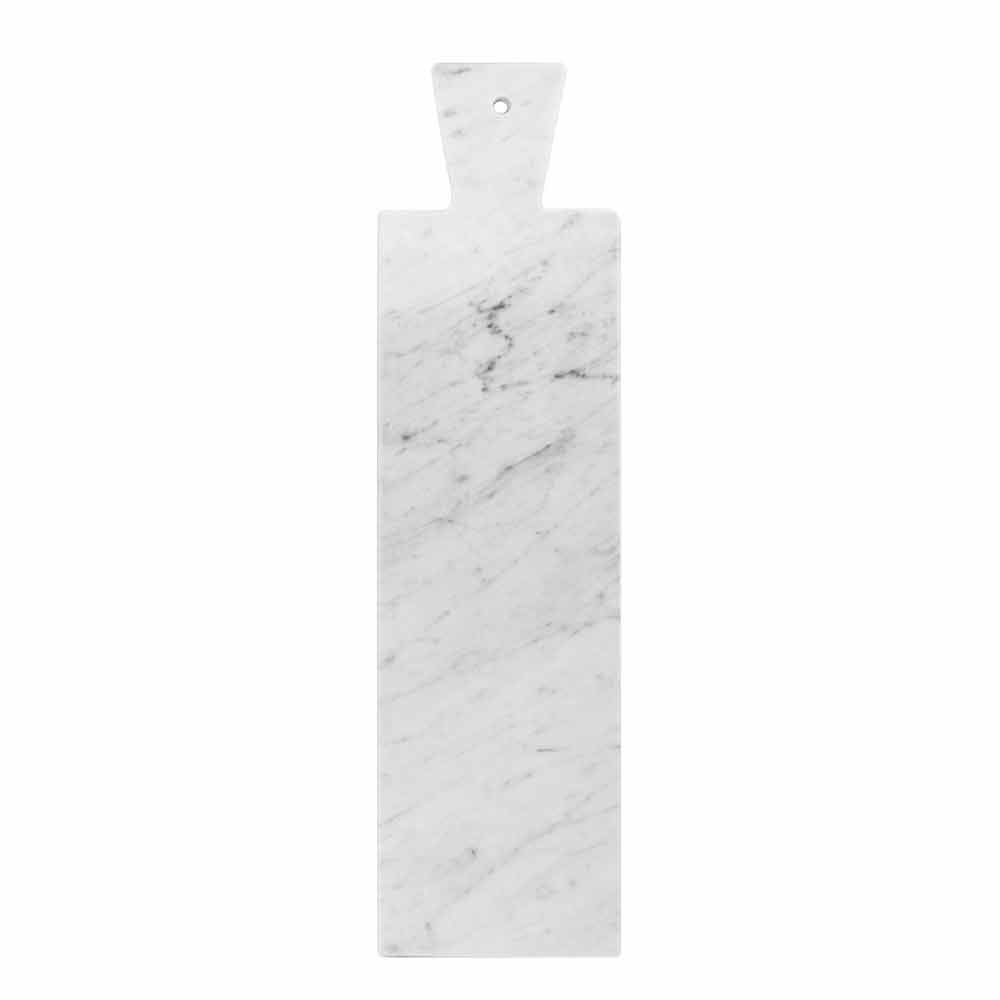 Modern rectangular cutting board Ā which is characterized by the white Carrara marble Ā high quality used for its making. It includes a practical hole on the handle that can be used for hanging. It is to be considered a unique piece as each block of marble is different in veins and shades.