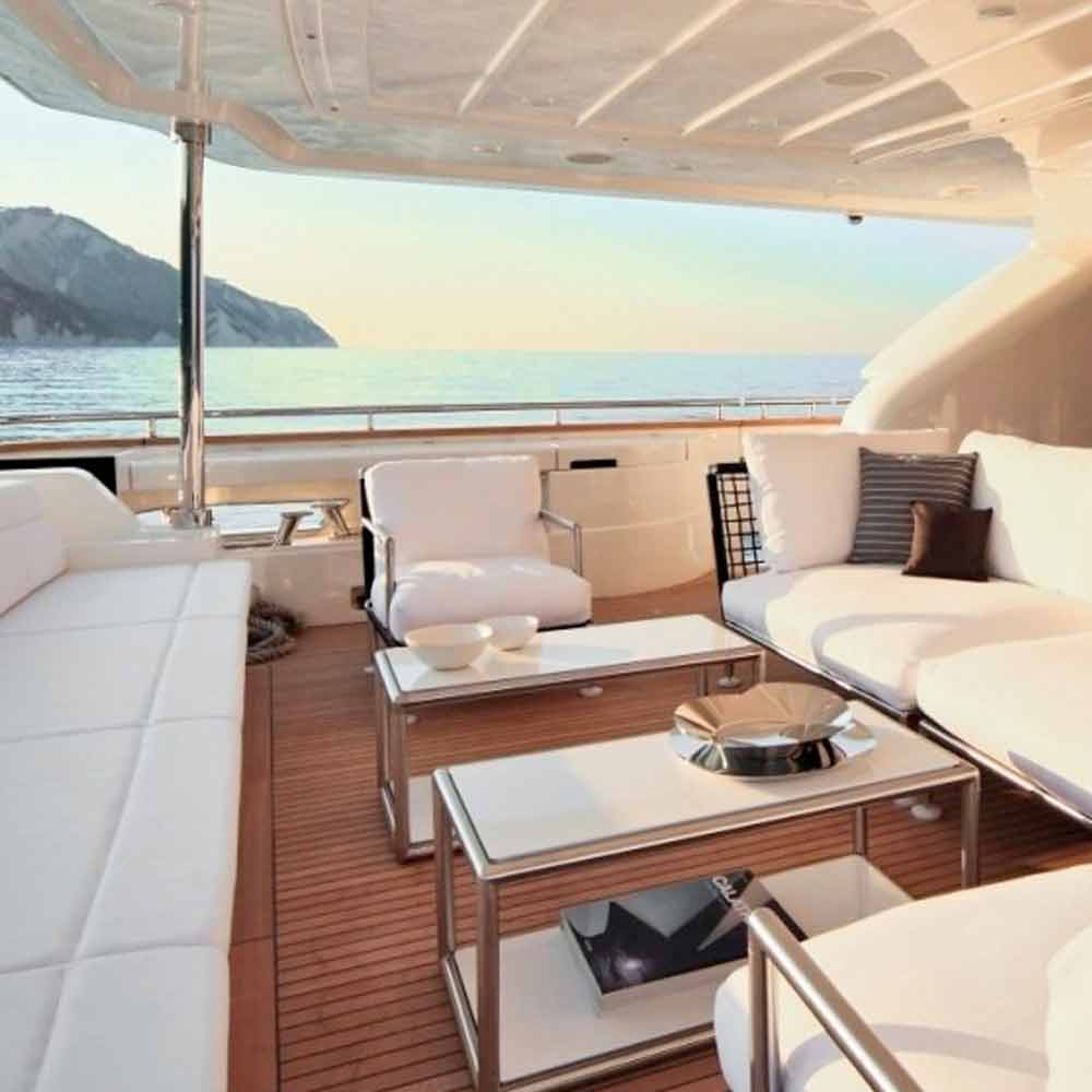 The seat and back are enriched with soft cushions with dryfeel padding and removable cover in outdoor fabric. The shatterproof feet are made of white Teflon.