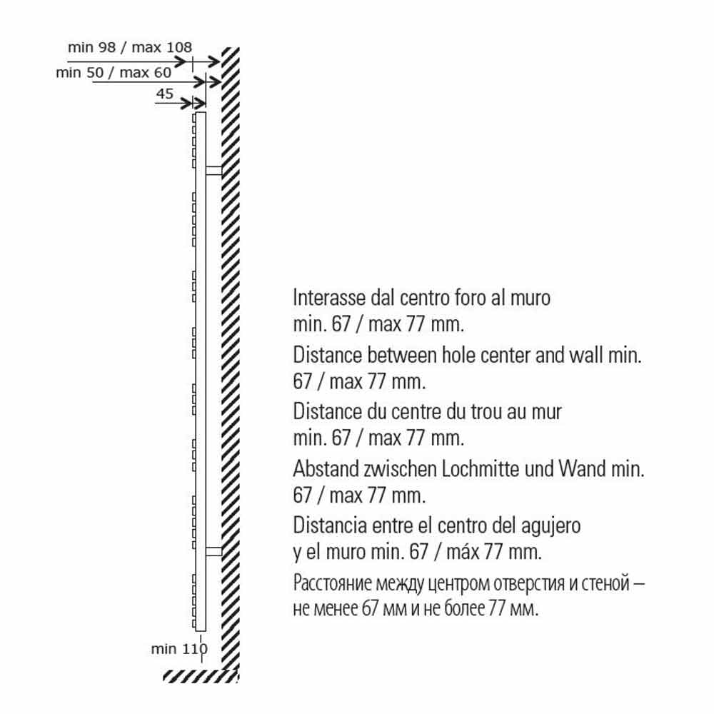 Hydraulic vertical design steel towel warmer on the wall, made in Italy.