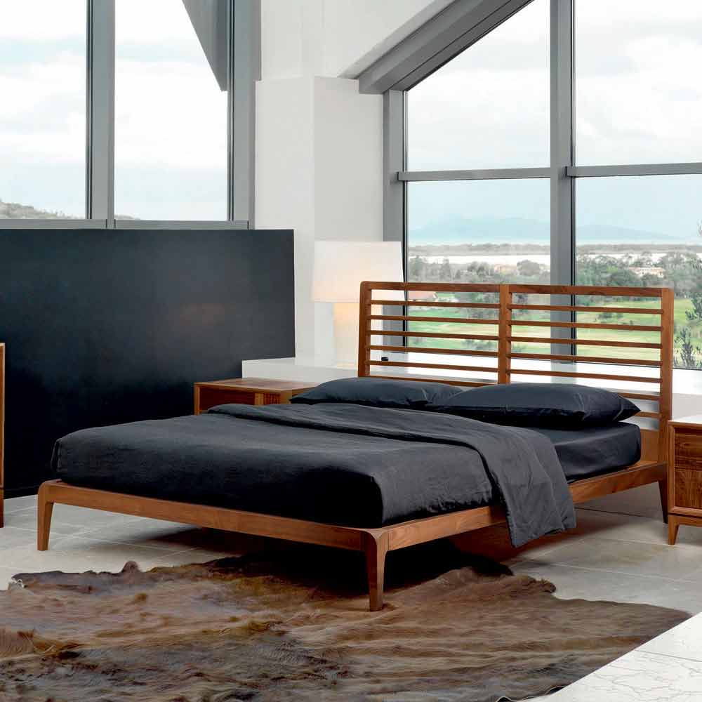 Made in Italy double bed with Didimo solid walnut base