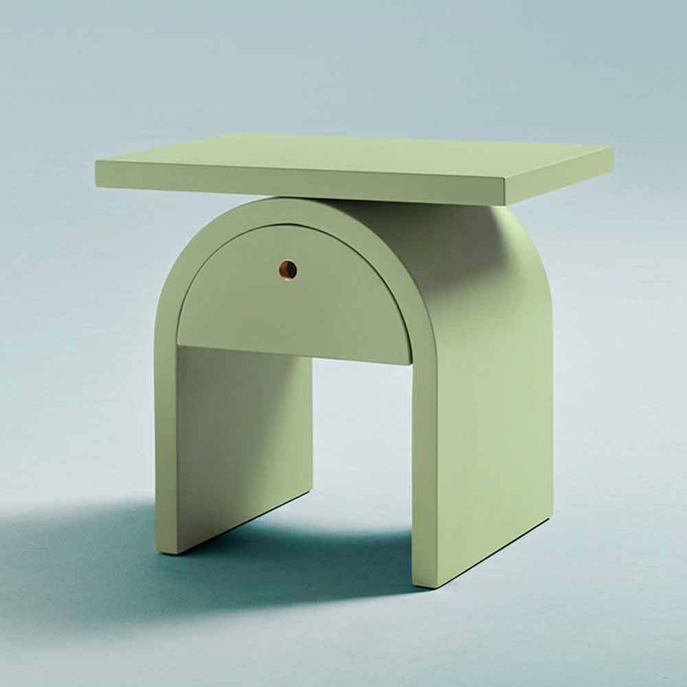 modern reinterpretation of the traditional shapes of the bedside table , for a small, ironic and light home architecture.