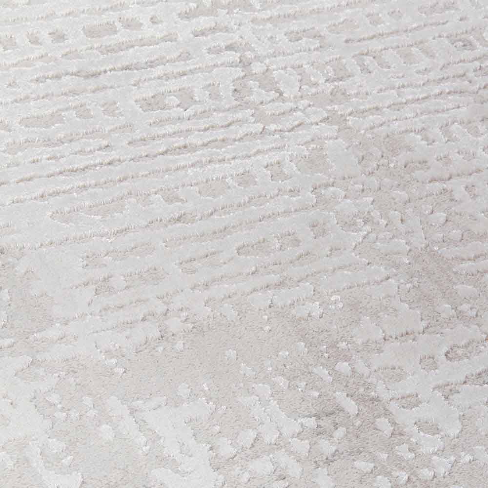 The pile is realized in mixed viscose and polyester resulting soft and materic thanks to the variations of thicknes.