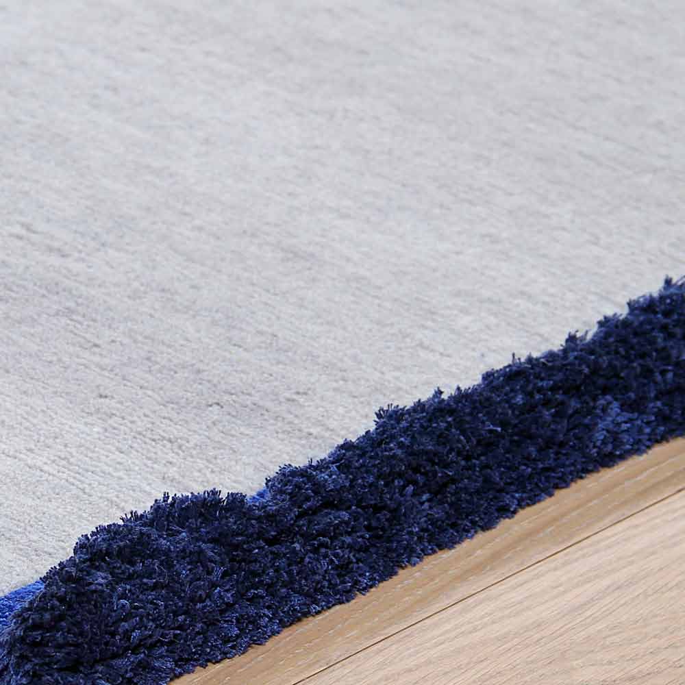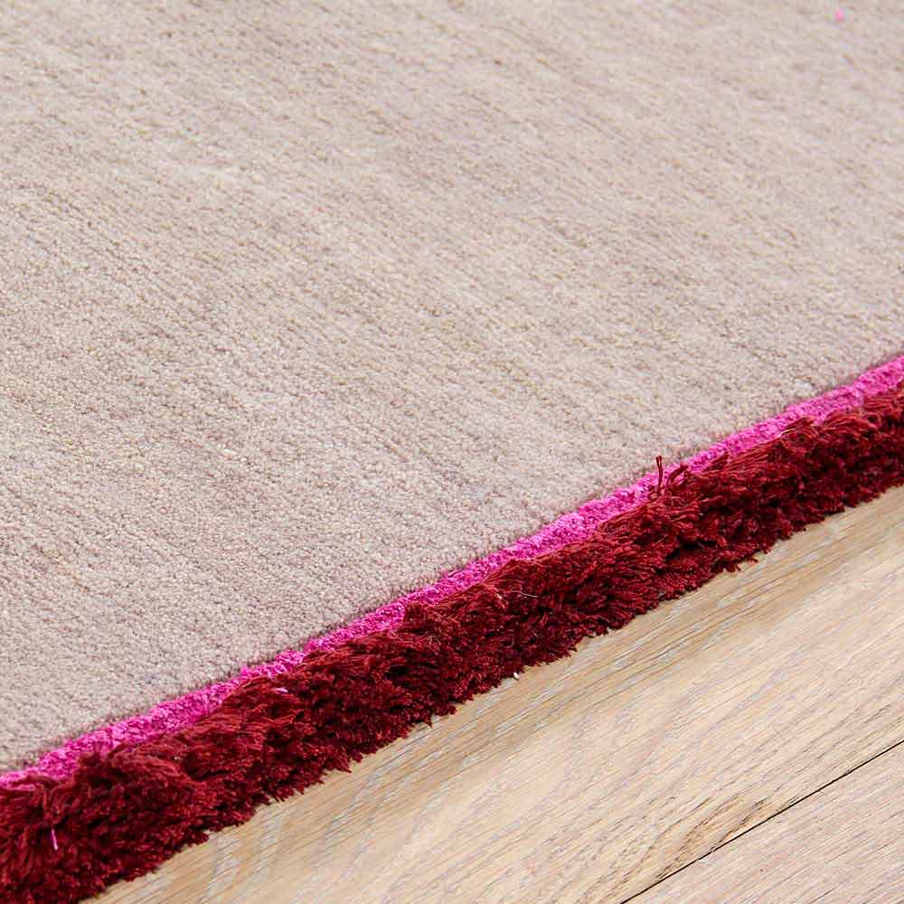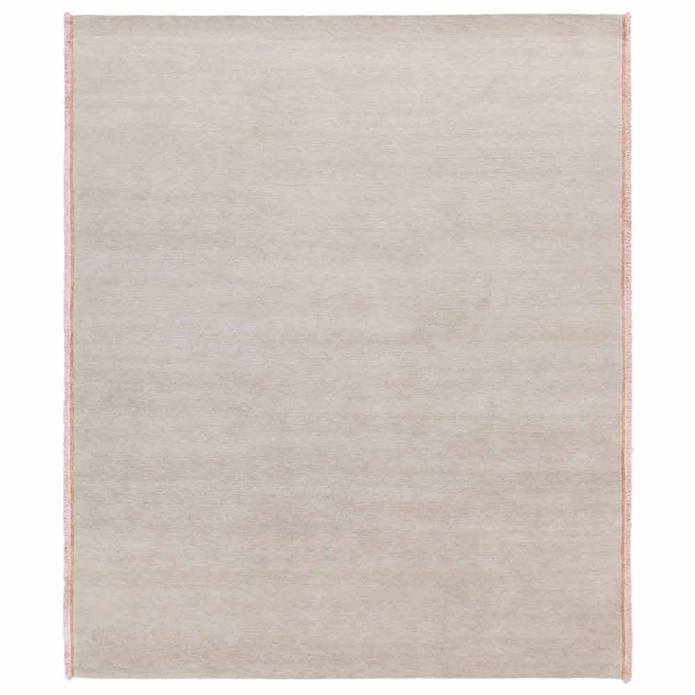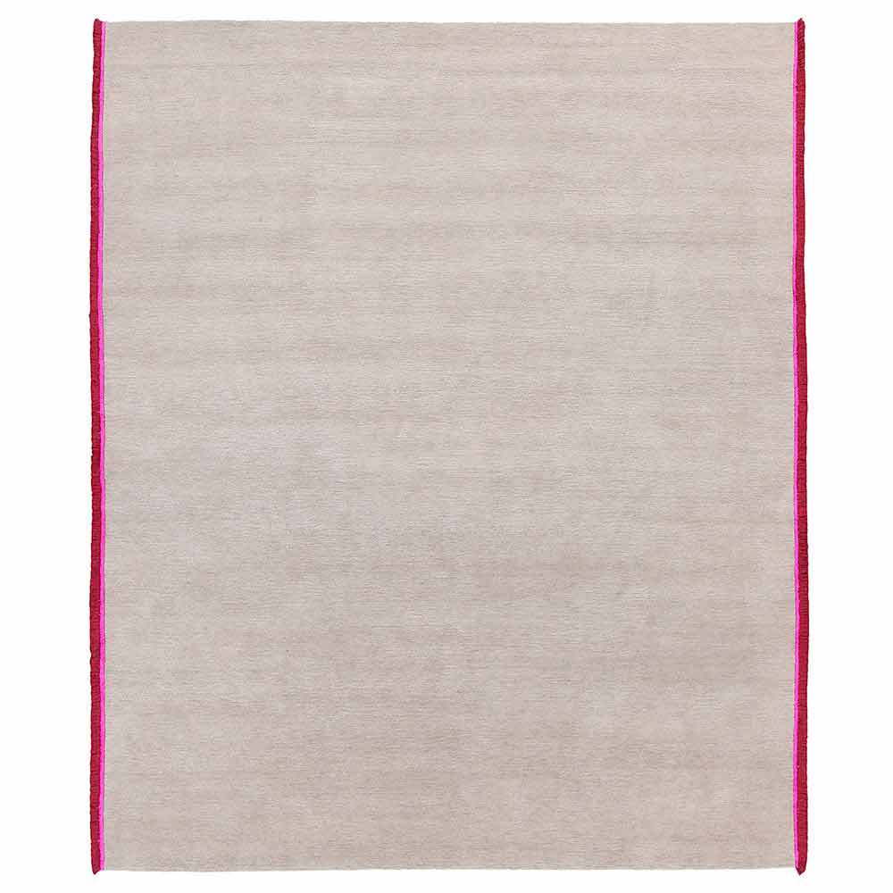 Modern design carpet available in two dimensions in wool and cotton with coloured edge in silk fringing.